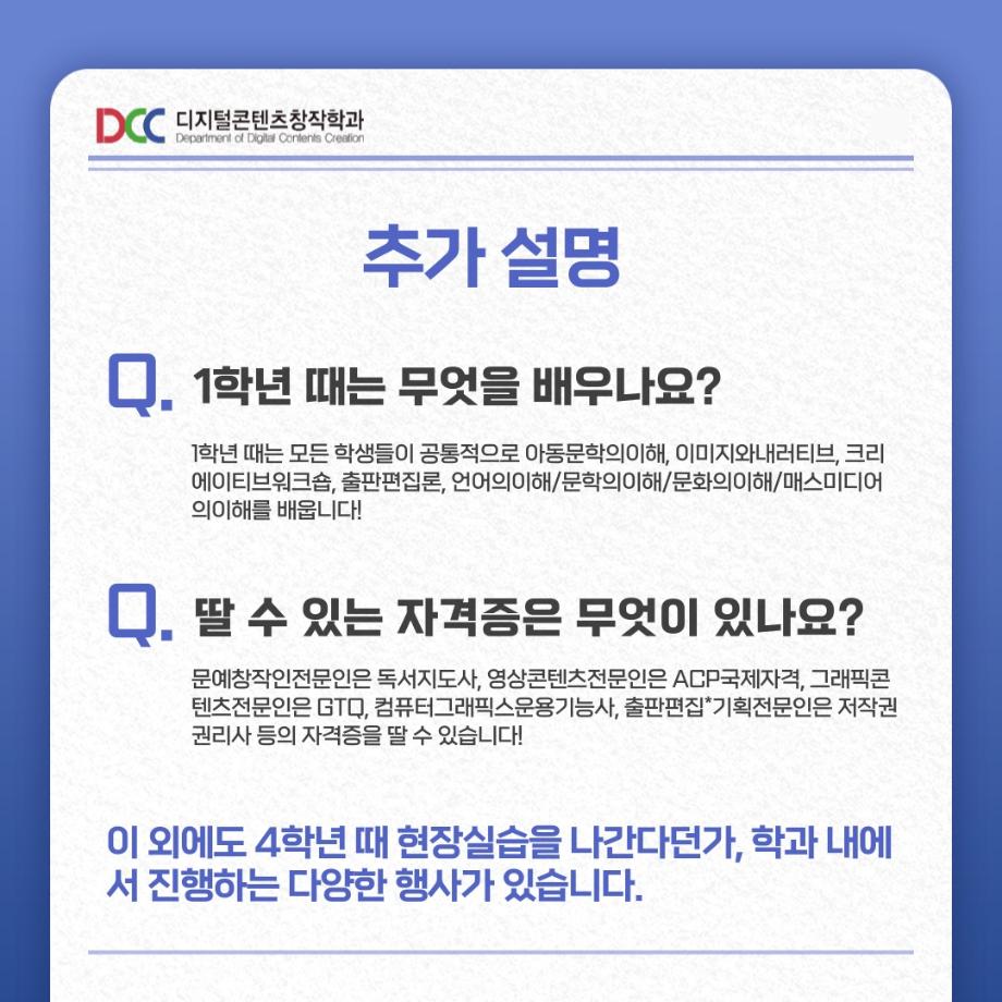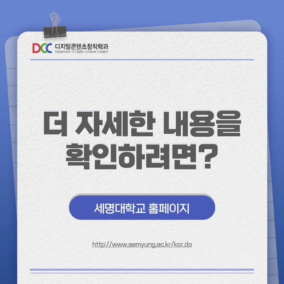 본문 시작 홈으로 MCC News 학과소개 교수소개 학과과정 MCC News MCC SNS 홈페이지가이드 학과 및 재학생 학과 및 재학생 교수 및 졸업생 미디어 정보통 학과 및 재학생 페이스북 트위터 프린트 📚디콘창 세부전공 소개📚 디지털콘텐츠창작학과 5087 2023-08-22 디지털콘텐츠창작학과 세부전공이 궁금한 학우분들을 위해 준비했습니다! 더 자세한 내용이 궁금하시다면 디지털콘텐츠창작학과 홈페이지에서 확인해볼 수 있습니다! 홈페이지 http://www.semyung.ac.kr/media-c.do 목록 이전교내 촬영 장소 추천! 다음 📷디콘창 “촬영”장비 소개📷 담당부서 : 미디어콘텐츠창작학과 담당자 : - 연락처 : 043-649-1741 최종수정일 : 2024-10-26 만족도조사 만족도 조사 이 페이지에서 제공하는 정보에 대하여 만족하시나요? 매우만족 만족 보통 불만족 매우불만족