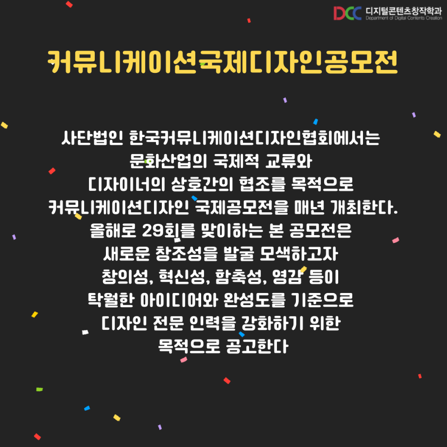 본문 시작 홈으로 MCC News 학과소개 교수소개 학과과정 MCC News MCC SNS 홈페이지가이드 학과 및 재학생 학과 및 재학생 교수 및 졸업생 미디어 정보통 학과 및 재학생 페이스북 트위터 프린트 디지털콘텐츠창작학과 재학생 커뮤니케이션 국제 디자인 공모전 수상 디지털콘텐츠창작학과 8256 2023-09-13 디지털콘텐츠창작학과 학우분들의 공모전 수상을 축하드립니다! 앞으로도 여러분들의 멋진 도전을 응원합니다! 목록 이전디지털콘텐츠창작학과, 장학금 마련을 위한 양심책방 운영 다음 디지털콘텐츠창작학과 재학생 국제 디자인트렌드 대전 수상 담당부서 : 미디어콘텐츠창작학과 담당자 : - 연락처 : 043-649-1741 최종수정일 : 2024-10-26 만족도조사 만족도 조사 이 페이지에서 제공하는 정보에 대하여 만족하시나요? 매우만족 만족 보통 불만족 매우불만족