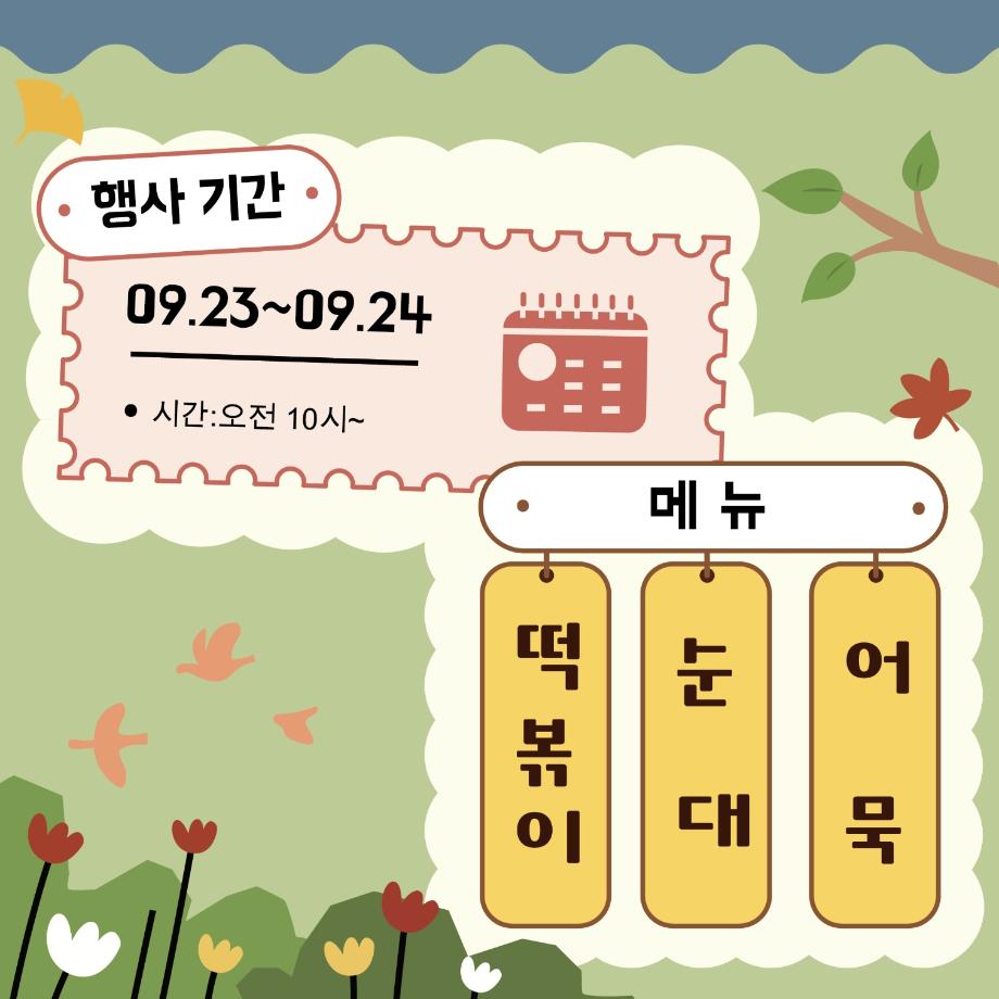 본문 시작 홈으로 MCC News 학과소개 교수소개 학과과정 MCC News MCC SNS 홈페이지가이드 학과 및 재학생 학과 및 재학생 교수 및 졸업생 미디어 정보통 학과 및 재학생 페이스북 트위터 프린트 오랜만에 찾아온 미콘먹거리! 미디어콘텐츠창작학과 2136 2024-09-23 미디어콘텐츠창작학과 학생회에서는 이번 제 32회 청룡축전이 열리는 9월23일, 24일 오전 10시부터 뭐든지 광장에서 먹거리 부스를 오픈합니다! 매콤, 짜장 떡볶이, 어묵꼬치, 순대까지 맛있는 먹거리 가득 있으니 많이 오셔서 한 입 하고 가세요!! 목록 이전2024년 추석맞이 특별 이벤트 다음 2024년도 세명대학교 인문예술대학 문화콘텐츠 창작공모전 개최 담당부서 : 미디어콘텐츠창작학과 담당자 : - 연락처 : 043-649-1741 최종수정일 : 2024-10-26 만족도조사 만족도 조사 이 페이지에서 제공하는 정보에 대하여 만족하시나요? 매우만족 만족 보통 불만족 매우불만족