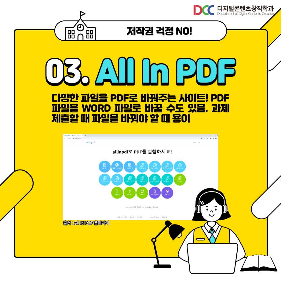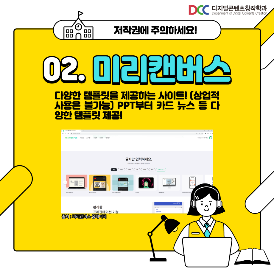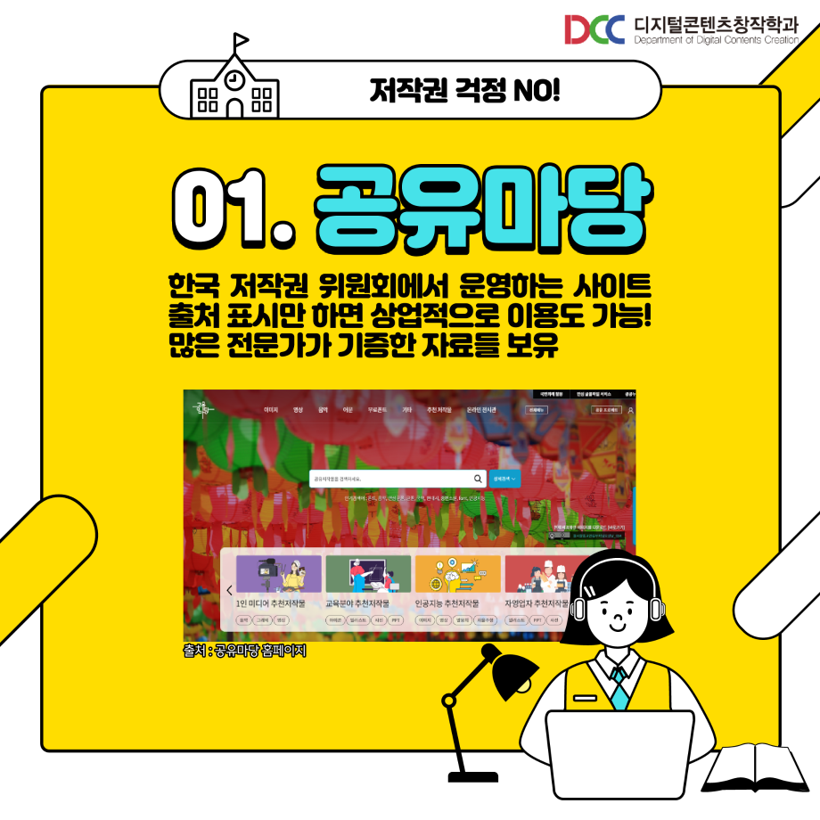 본문 시작 홈으로 MCC News 학과소개 교수소개 학과과정 MCC News MCC SNS 홈페이지가이드 학과 및 재학생 학과 및 재학생 교수 및 졸업생 미디어 정보통 학과 및 재학생 페이스북 트위터 프린트 과제 할 때 쓰기 좋은 사이트 디지털콘텐츠창작학과 4717 2023-06-02 과제할 때 사용하기 좋은 사이트를 공유해드려요! 저작권 걱정 없는 사이트들을 정리해봤습니다! 학우 분들의 과제 만점을 위해! 저작권 걱정 없는 사이트를 확인해보세요 :) 목록 이전제11회 24시간 필름페스티벌 엔딩 영상 다음 🍭 오늘의 디콘 15탄 🍭 담당부서 : 미디어콘텐츠창작학과 담당자 : - 연락처 : 043-649-1741 최종수정일 : 2024-10-26 만족도조사 만족도 조사 이 페이지에서 제공하는 정보에 대하여 만족하시나요? 매우만족 만족 보통 불만족 매우불만족