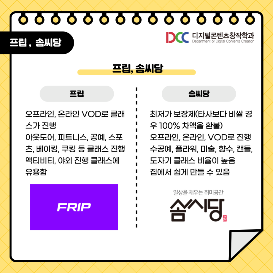 본문 시작 홈으로 MCC News 학과소개 교수소개 학과과정 MCC News MCC SNS 홈페이지가이드 학과 및 재학생 학과 및 재학생 교수 및 졸업생 미디어 정보통 학과 및 재학생 페이스북 트위터 프린트 📚여름방학 자기계발 플랫폼📚 디지털콘텐츠창작학과 3860 2023-07-14 여름방학동안 학우분들의 자기계발을 도와줄 수 있는 플랫폼들을 소개해드려요! 다양한 플랫폼을 이용하며 스펙과 경험을 쌓을 수 있는 기회를 잡아보는 건 어떨까요?😄 목록 이전🍭 오늘의 디콘 17탄 🍭 다음 디콘창이 추천하는 영화 추천 6선 4탄 담당부서 : 미디어콘텐츠창작학과 담당자 : - 연락처 : 043-649-1741 최종수정일 : 2024-10-26 만족도조사 만족도 조사 이 페이지에서 제공하는 정보에 대하여 만족하시나요? 매우만족 만족 보통 불만족 매우불만족