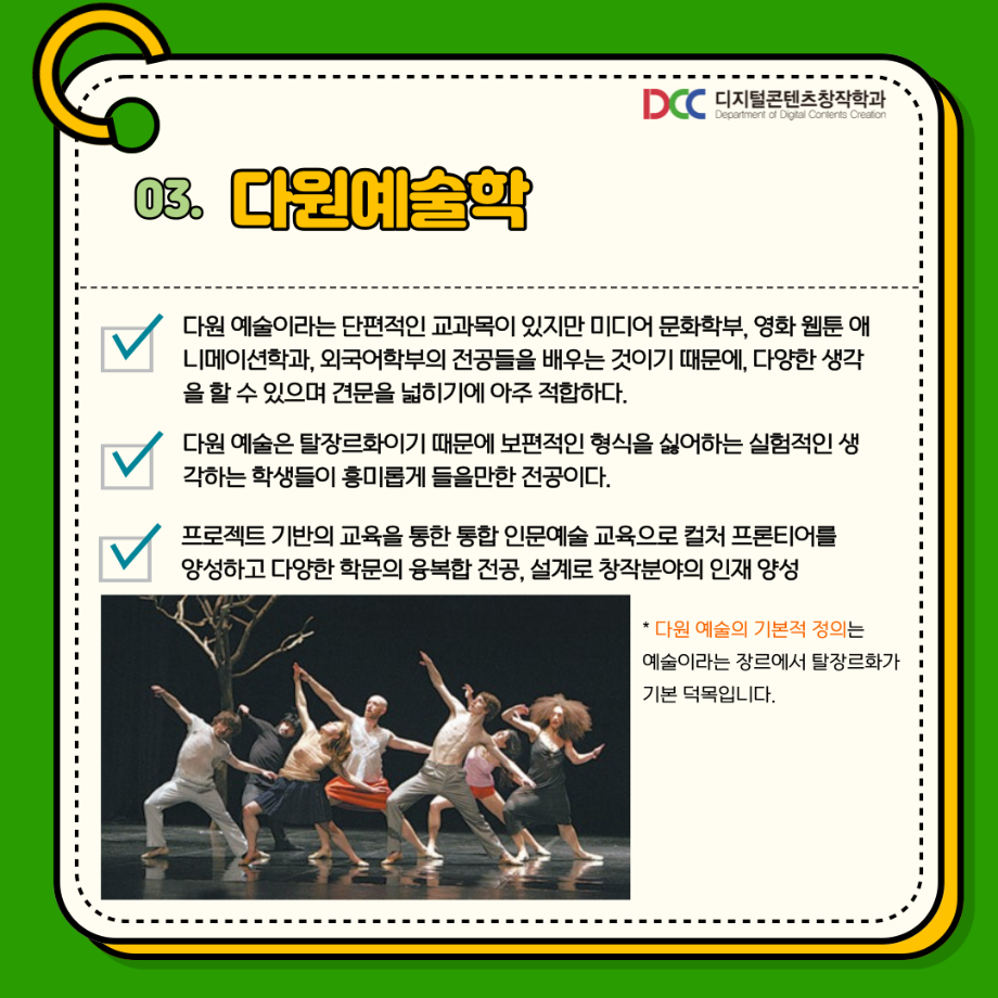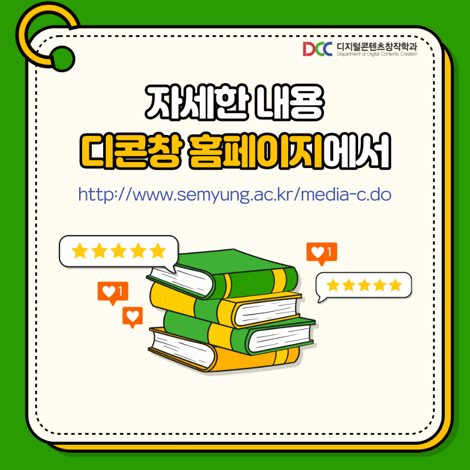 본문 시작 홈으로 MCC News 학과소개 교수소개 학과과정 MCC News MCC SNS 홈페이지가이드 학과 및 재학생 학과 및 재학생 교수 및 졸업생 미디어 정보통 학과 및 재학생 페이스북 트위터 프린트 학생회가 알려주는 연계전공📚 디지털콘텐츠창작학과 4586 2023-07-27 디지털콘텐츠창작학과와 연계할 수 있는 전공이 있다고⁉ 디콘창 학생회가 연계전공에 대해 알려드려요!! 다양한 전공수업을 배워보며 다양한 전공을 배워보는 건 어떨까요? 목록 이전디콘창이 추천하는 영화 추천 6선 5탄 다음 📝디콘창 학생회 월말결산 담당부서 : 미디어콘텐츠창작학과 담당자 : - 연락처 : 043-649-1741 최종수정일 : 2024-10-26 만족도조사 만족도 조사 이 페이지에서 제공하는 정보에 대하여 만족하시나요? 매우만족 만족 보통 불만족 매우불만족