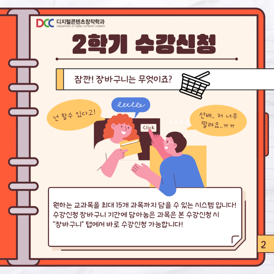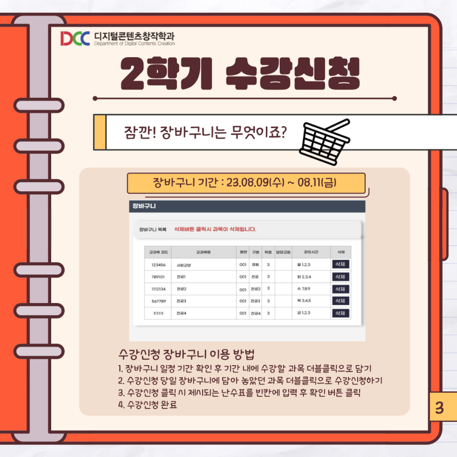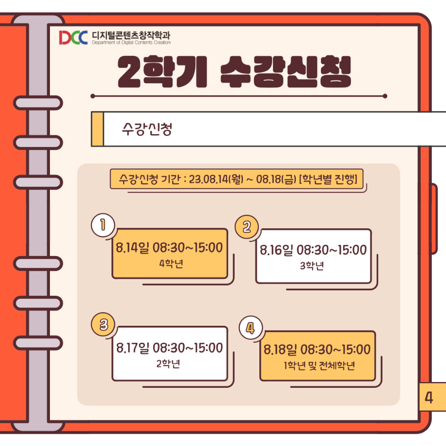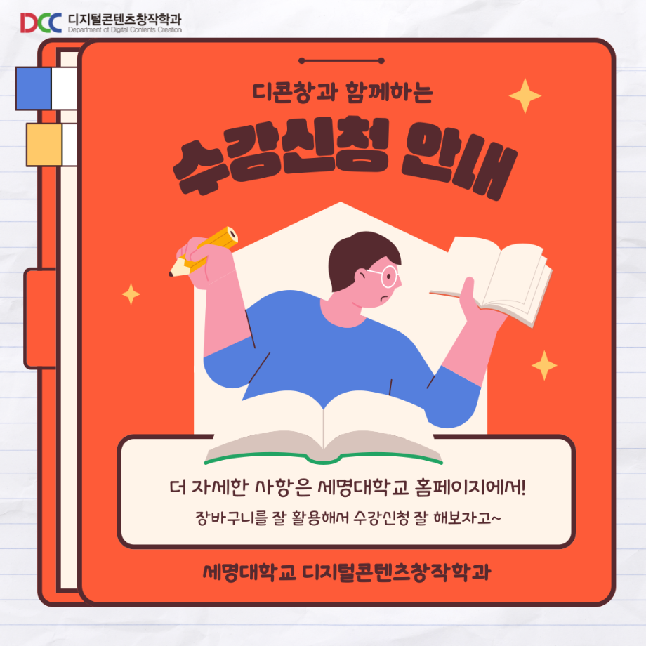 본문 시작 홈으로 MCC News 학과소개 교수소개 학과과정 MCC News MCC SNS 홈페이지가이드 학과 및 재학생 학과 및 재학생 교수 및 졸업생 미디어 정보통 학과 및 재학생 페이스북 트위터 프린트 📚디콘창이 알려주는 수강신청 안내📚 디지털콘텐츠창작학과 3544 2023-08-10 디콘창이 알려주는 수강신청 방법을 통해 모두 올클! 성공하시길 바라요! 자세한 사항은 세명대학교 홈페이지를 통해 확인할 수 있습니다! 모두들 수강신청 화이팅하시길 바라요!! 목록 이전🍭 오늘의 디콘 19탄 🍭 다음 23년도 교외 공모전 알려드려요‼ 3탄 담당부서 : 미디어콘텐츠창작학과 담당자 : - 연락처 : 043-649-1741 최종수정일 : 2024-10-26 만족도조사 만족도 조사 이 페이지에서 제공하는 정보에 대하여 만족하시나요? 매우만족 만족 보통 불만족 매우불만족