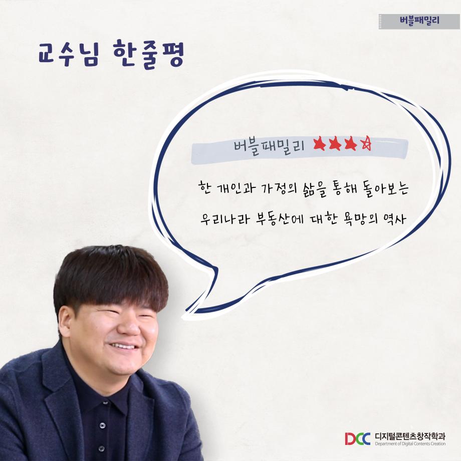 본문 시작 홈으로 MCC News 학과소개 교수소개 학과과정 MCC News MCC SNS 홈페이지가이드 학과 및 재학생 학과 및 재학생 교수 및 졸업생 미디어 정보통 학과 및 재학생 페이스북 트위터 프린트 디콘창이 추천하는 영화 추천 6선 6탄 디지털콘텐츠창작학과 5654 2023-08-30 세명대학교 디지털콘텐츠창작학과가 추천하는 영화 추천 6선 시리즈 마지막 여섯번째입니다! 마지막 6탄의 추천 영화는 '버블패밀리'입니다. 영화 추천 시리즈에는 추천 영화의 줄거리, 스틸컷, 감상 가능한 사이트, 교수님의 한 줄 평까지 볼 수 있습니다. 짧지만 알찬 정보는 담았으니, 다양한 장르의 추천 영화를 감상해 보시고 여러분들의 한 줄 평을 남겨주세요! 목록 이전📷디콘창 “촬영”장비 소개📷 다음 📝디콘창 학생회 8월 월말결산 담당부서 : 미디어콘텐츠창작학과 담당자 : - 연락처 : 043-649-1741 최종수정일 : 2024-10-26 만족도조사 만족도 조사 이 페이지에서 제공하는 정보에 대하여 만족하시나요? 매우만족 만족 보통 불만족 매우불만족