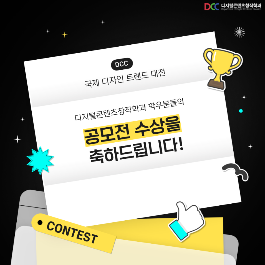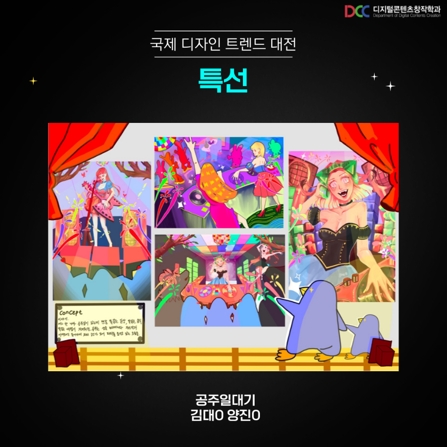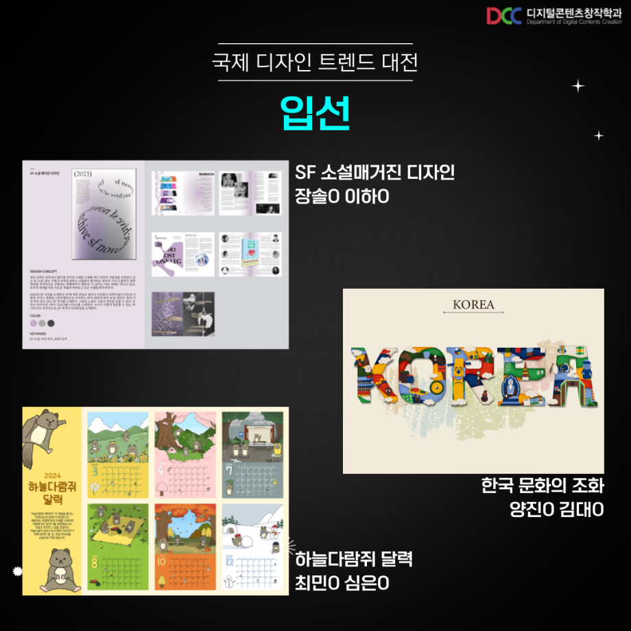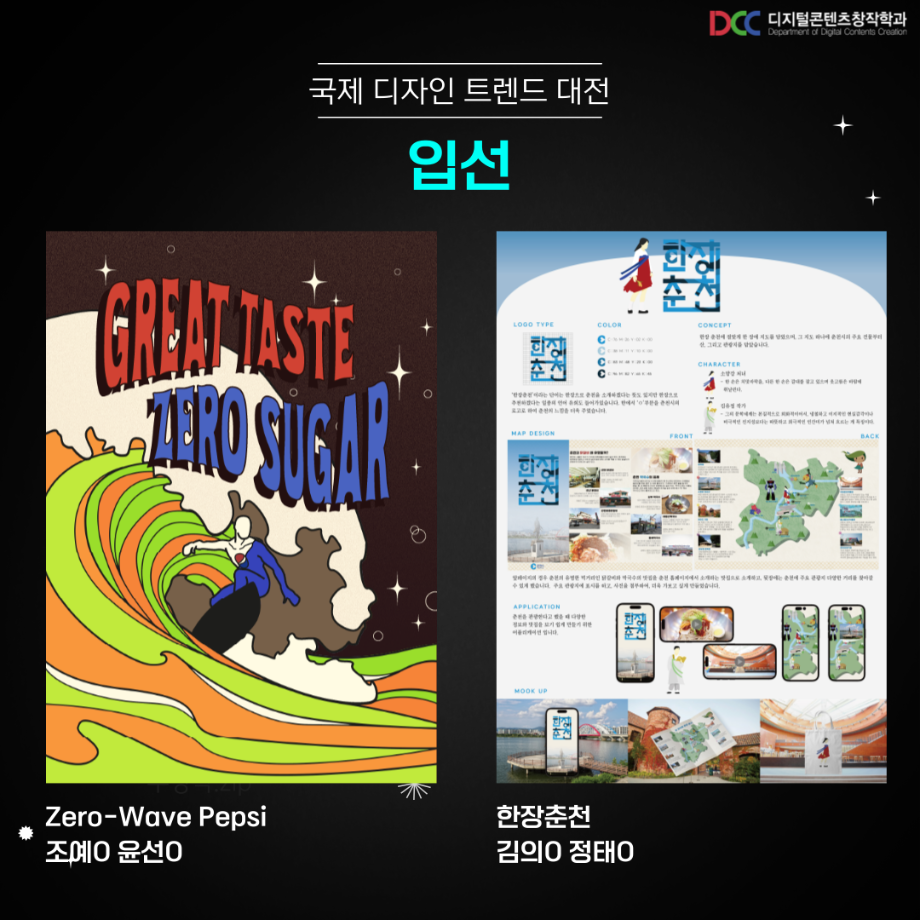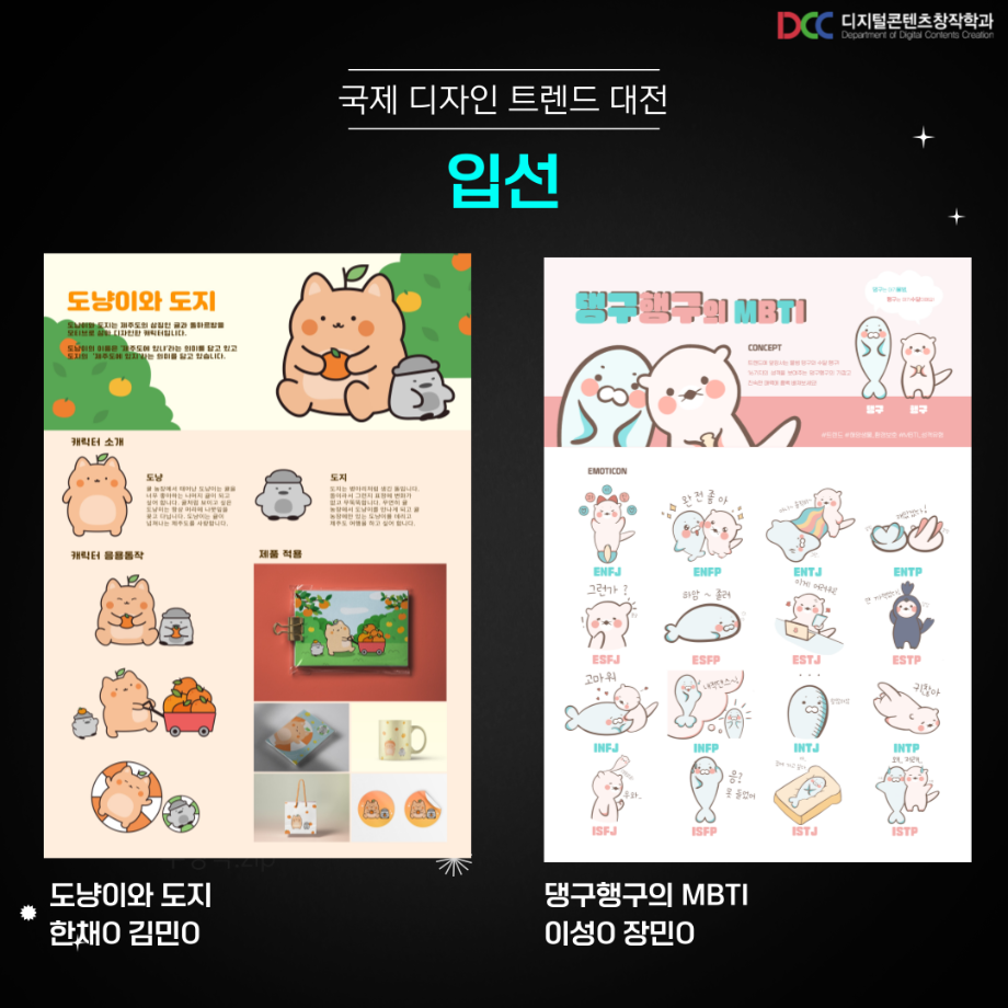 본문 시작 홈으로 MCC News 학과소개 교수소개 학과과정 MCC News MCC SNS 홈페이지가이드 학과 및 재학생 학과 및 재학생 교수 및 졸업생 미디어 정보통 학과 및 재학생 페이스북 트위터 프린트 디지털콘텐츠창작학과 재학생 국제 디자인트렌드 대전 수상 디지털콘텐츠창작학과 9553 2023-09-13 디지털콘텐츠창작학과 학우분들의 공모전 수상을 축하드립니다! 앞으로도 여러분들의 멋진 도전을 응원합니다! 목록 이전디지털콘텐츠창작학과 재학생 커뮤니케이션 국제 디자인 공모전 수상 다음 🍭 오늘의 디콘 21탄 🍭 담당부서 : 미디어콘텐츠창작학과 담당자 : - 연락처 : 043-649-1741 최종수정일 : 2024-10-26 만족도조사 만족도 조사 이 페이지에서 제공하는 정보에 대하여 만족하시나요? 매우만족 만족 보통 불만족 매우불만족