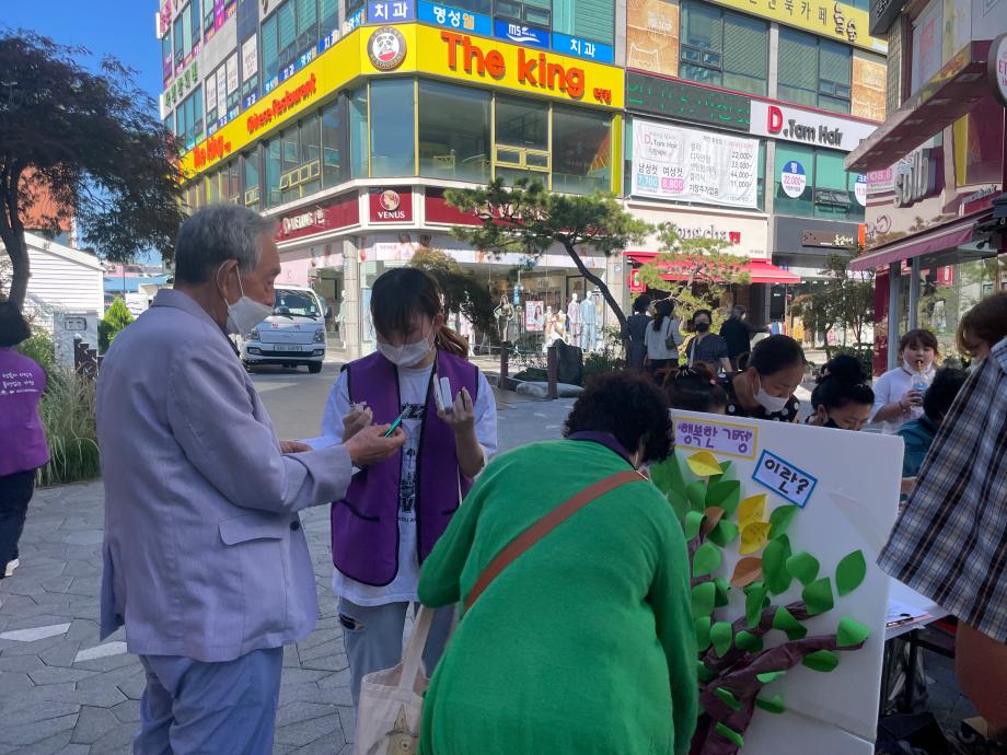 본문 시작 홈으로 커뮤니티 학과안내 교수소개 학과과정 커뮤니티 홈페이지가이드 학과사진첩 공지사항 취업정보 학과사진첩 학과행사 동아리 학생회 교우소식 학과사진첩 페이스북 트위터 프린트 2022-09-01, 07, 23 <팔레트> 봉사활동 법학과 3479 2022-10-07 2022-09-01, 07, 23 <팔레트> 봉사활동 2022.09.01, 의림지 공원에서 가정폭력 예방을 위해 주변 상가들에 협조를 받아 함께 캠페인 진행 2022.09.07, 제천 중앙동 <차 없는 거리>에서 제천가정폭력지원센터 주최, 소원팔찌제작과 “내가 생각하는 행복한 가정”에 대한 내용을 적는 홍보행사를 진행 2022.09.23, 제천시 종합운동장에서 소망팔찌 제작, 가정폭력 관련 퀴즈, 인식개선 설명회 등을 진행하는 부스를 운영 목록 이전2022-09-30 청주 일신여자고등학교, 고교로 찾아가는 학과전공특강 프로그램 시행 다음 2022-10-18 단양중학교, 학과참여형 전공특강 프로그램 시행 담당부서 : 법학과 담당자 : - 연락처 : 043-649-1764 최종수정일 : 2024-10-26 만족도조사 만족도 조사 이 페이지에서 제공하는 정보에 대하여 만족하시나요? 매우만족 만족 보통 불만족 매우불만족