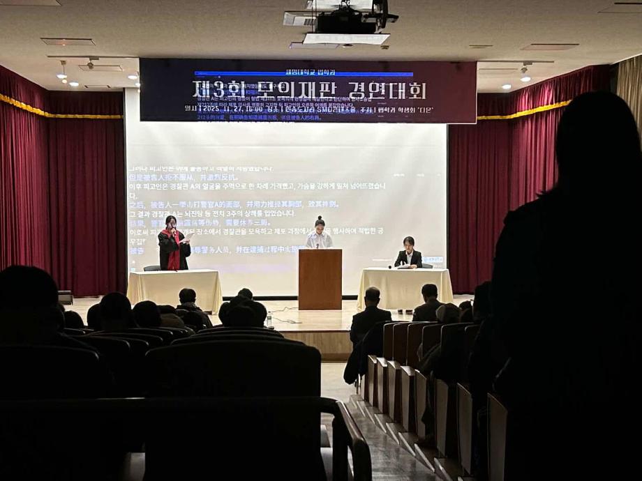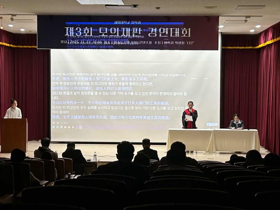 본문 시작 홈으로 커뮤니티 학과안내 교수소개 학과과정 커뮤니티 홈페이지가이드 학과사진첩 공지사항 취업정보 학과사진첩 학과행사 동아리 학생회 교우소식 학과사진첩 페이스북 트위터 프린트 2025학년도 제3회 법학과 모의재판 경연대회 법학과 1428 2025-12-03 2025년 11월 27일 민송도서관 1층 콘텐츠홀에서 법학과 모의재판 경연대회 진행하였습니다. 참여하신 모든 분들 고생 많으셨습니다. 목록 이전2025학년도 법학과 특강 다음 겨울방학 해외 배낭여행-대만 담당부서 : 법학과 담당자 : - 연락처 : 043-649-1764 최종수정일 : 2024-10-26 만족도조사 만족도 조사 이 페이지에서 제공하는 정보에 대하여 만족하시나요? 매우만족 만족 보통 불만족 매우불만족