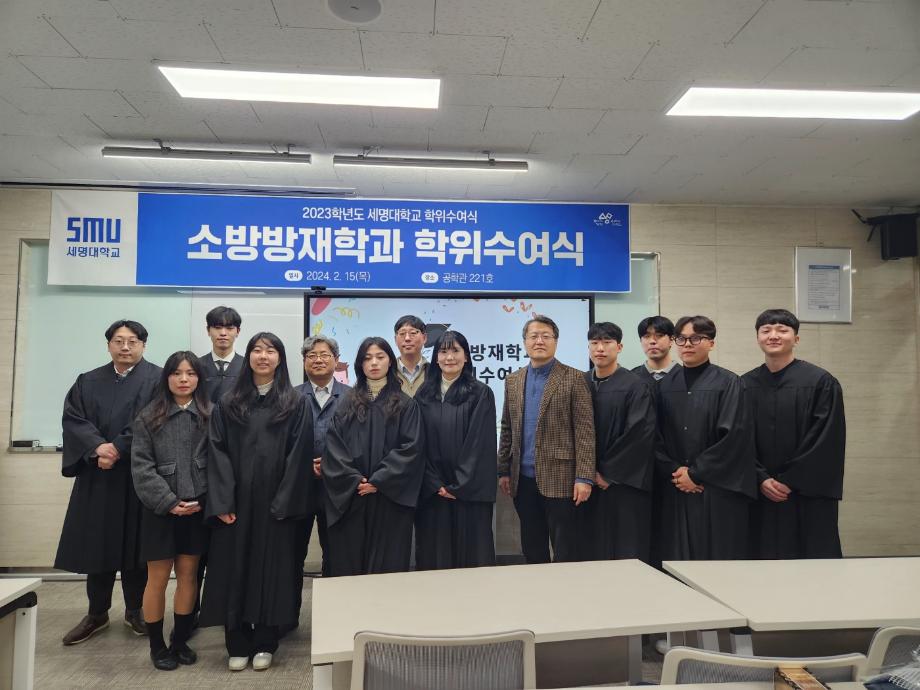 본문 시작 홈으로 커뮤니티 학과소개 교수소개 전공과정 커뮤니티 홈페이지가이드 학과행사 학과공지 채용정보 학사일정 학과행사 동아리 소방방재학과의 자랑 궁금합니다 수험생 Q&A 학과행사 페이스북 트위터 프린트 2023학년도 제30회 소방방재학과 학위수여식 소방방재학과 4128 2024-02-16 2023학년도 세명대학교 소방방재학과 학위수여식 2024년 2월 15일 수요일에 공학관 221호에서 진행되었습니다. 소방방재학과 교수님들과 졸업생, 학부모님들께서 참석하였습니다. 소방방재학과는 올해 32명의 학생들이 학사 학위를 취득하였습니 졸업을 진심으로 축하드리며 졸업생분들의 앞날을 응원합니다. 목록 이전제 7회 사회과학토론대회 장려상 수상 다음 2024학년도 스승의 날 행사 담당부서 : 소방방재학과 담당자 : - 연락처 : 043-649-1787 최종수정일 : 2024-10-26 만족도조사 만족도 조사 이 페이지에서 제공하는 정보에 대하여 만족하시나요? 매우만족 만족 보통 불만족 매우불만족