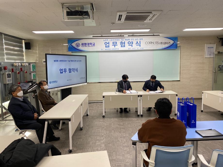 세명대학교 소방방재학과 첨단 강의실에서 2022. 12. 02(금) 업무협약식이 진행되었습니다.