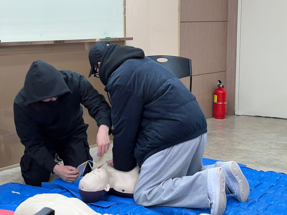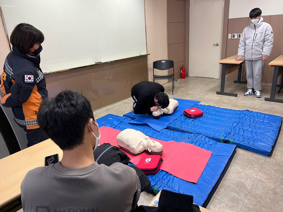 교육장, 실습장, 시험장을 구분하여 교육이 실시되었고 학생들은 CPR 등 기본적인 소방안전관리자 교육을 직접 실습하는 시간을 가졌습니다.