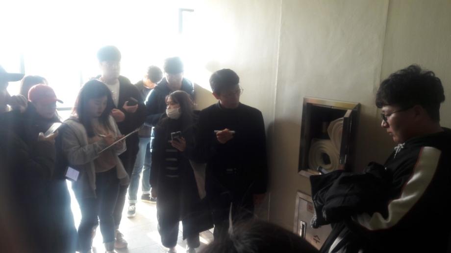 본문 시작 홈으로 커뮤니티 학과소개 교수소개 전공과정 커뮤니티 홈페이지가이드 학과행사 학과공지 채용정보 학사일정 학과행사 동아리 소방방재학과의 자랑 궁금합니다 수험생 Q&A 학과행사 페이스북 트위터 프린트 18-2 소방현장실무체험 소방방재학과 8254 2018-11-15 이번년도부터 개설된 교과목인 소방현장실무체험 과목에 대하여 김규현 강사님이 해당 과목을 수강중인 4학년 학생을 대상으로 교내의 학술관 건물의 전반적인 소방설비시스템을 실물을 통해 설명하였습니다. 목록 이전18-2학기 소방현장실무체험 다음 18-2학기 CPR 교육 담당부서 : 소방방재학과 담당자 : - 연락처 : 043-649-1787 최종수정일 : 2024-10-26 만족도조사 만족도 조사 이 페이지에서 제공하는 정보에 대하여 만족하시나요? 매우만족 만족 보통 불만족 매우불만족