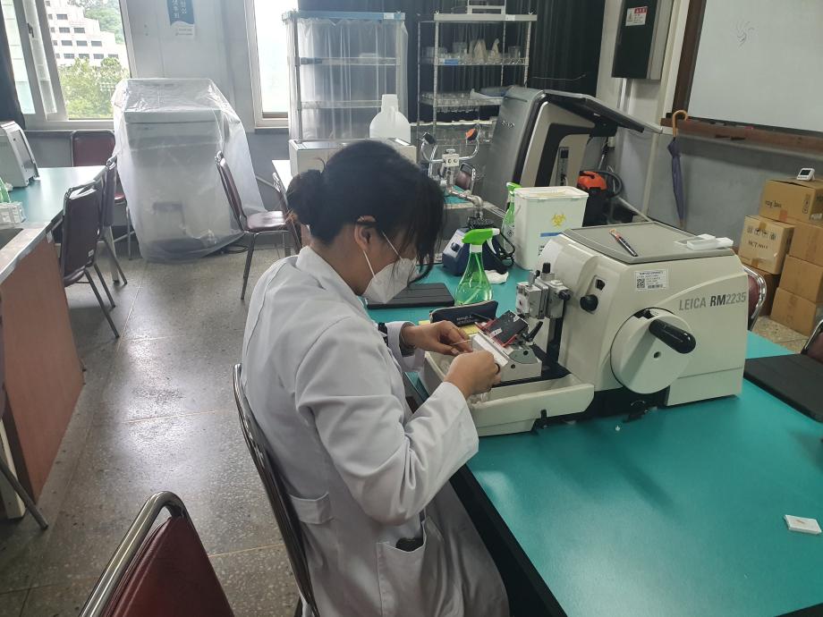 본문 시작 2021학년도 하계 방학 중 특별활동 임상병리학과 3729 2022-01-24 2021학년도 하계방학기간에 우계형 교수님 주관으로 조직처리 및 제작에 관한 심화과정을 주제로 한 특별활동을 진행하였습니다. 목록 이전2021학년도 실험동물기술원 자격취득 특별활동 다음 2021학년도 졸업생특강 담당부서 : 임상병리학과 담당자 : - 연락처 : 043-649-1537 최종수정일 : 2024-10-26 만족도조사 만족도 조사 이 페이지에서 제공하는 정보에 대하여 만족하시나요? 매우만족 만족 보통 불만족 매우불만족