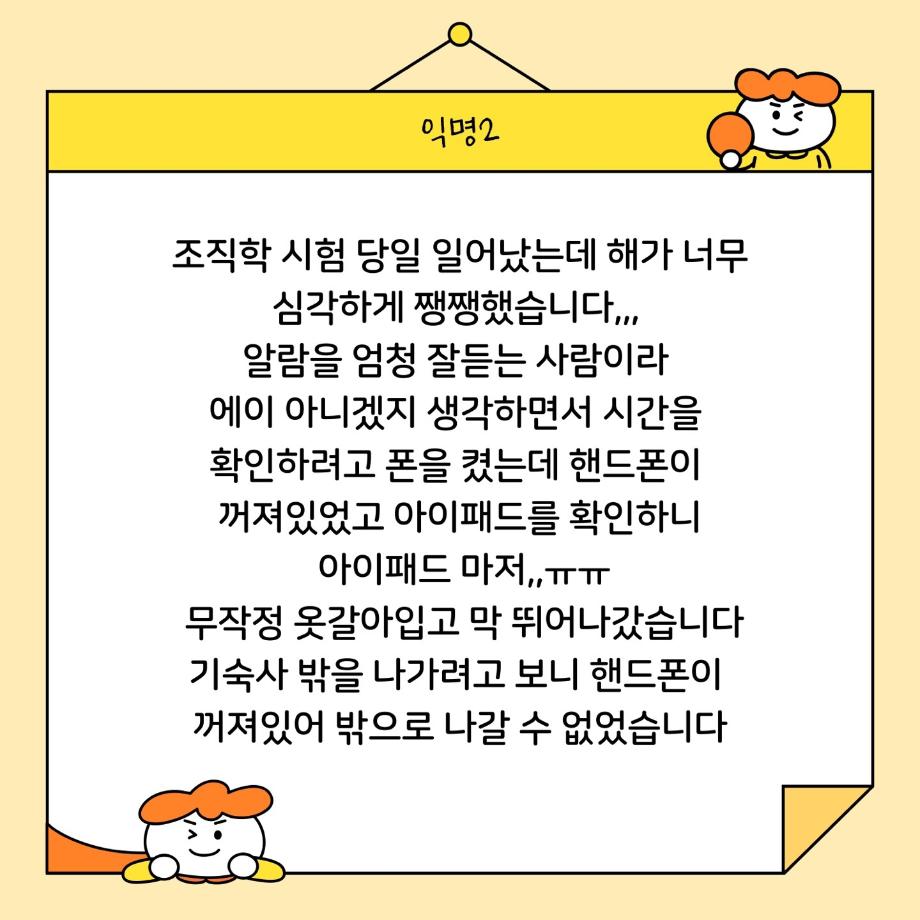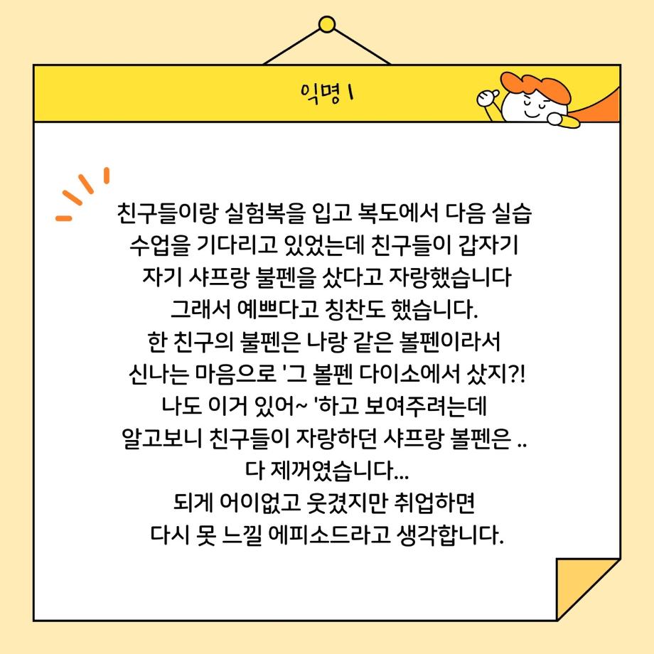본문 시작 학교 에피소드 이벤트 임상병리학과 1942 2024-05-27 안녕하세요 16기 학생회입니다☺️ 개교기념일 기념 이벤트 주제인 ‘학교에서 있었던 재미있는 에피소드’ 3분을 선정하였습니다! 익명 1,2,3분께는 배달의민족 상품권을 증정해 드릴 예정입니다. 다음 이벤트도 많이 기대해 주세요:) 목록 이전과대 회식 다음 충북도페스티벌 in 증평 회식 담당부서 : 임상병리학과 담당자 : - 연락처 : 043-649-1537 최종수정일 : 2024-10-26 만족도조사 만족도 조사 이 페이지에서 제공하는 정보에 대하여 만족하시나요? 매우만족 만족 보통 불만족 매우불만족
