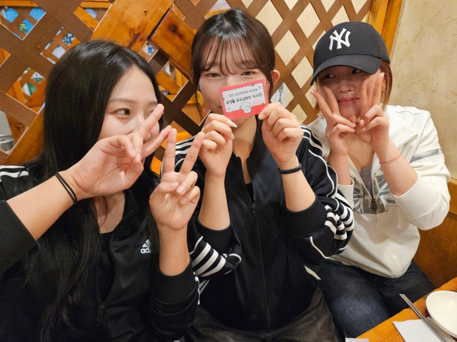 본문 시작 교수님과의 즐거운 식사 자리 임상병리학과 1402 2025-10-01 개강총회 상품이었던 교수님과의 식사권 사용 인증샷입니다. 목록 이전2025년도 2학기 개강총회 이전청룡체전 피구부문 우승 담당부서 : 임상병리학과 담당자 : - 연락처 : 043-649-1537 최종수정일 : 2024-10-26 만족도조사 만족도 조사 이 페이지에서 제공하는 정보에 대하여 만족하시나요? 매우만족 만족 보통 불만족 매우불만족