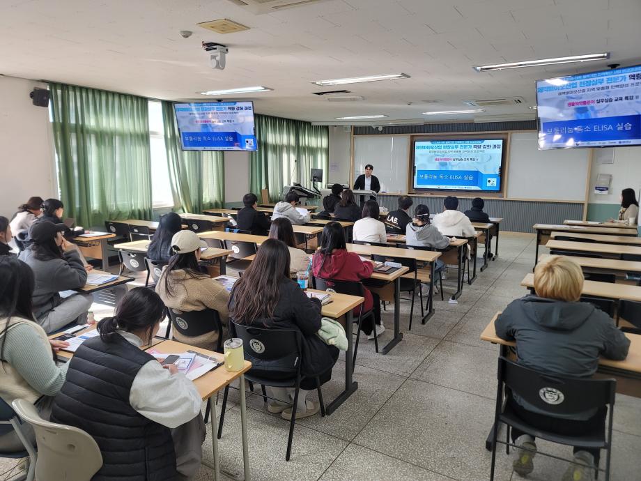 본문 시작 홈으로 학부자료실 학부소개 교육과정 학부공지게시판 학부자료실 홈페이지가이드 학부행사 및 사진게시판 학부행사 및 사진게시판 학생회 소개 학부행사 및 사진게시판 페이스북 트위터 프린트 제약바이오산업 현장실무 전문가 역량 강화 과정 생물의약품분야 교육 바이오제약산업학부 3468 2023-11-13 세명대학교 바이오제약산업학부에서는 제약바이오산업 현장실무 전문가 역량 강화 과정- 생물의약품분야 실무실습 교육특강 II 를 바이오제약 비교과 3차교육으로 실시하였다. 교육은 2023년 11월 10일 (금) 14:00-17:00 이공학관 406호 및 407호에서 실시 되었으며, ELISA 원리 이론 교육, 보톨이눔 독소의 산업적 중요성 및 품질관리 개념의 이해의 내용으로 진행되었다. 목록 이전바이오제약산업학부 CHARM 경험 발표회 다음 IC-PBL orientation 개최 담당부서 : 바이오제약산업학부 담당자 : - 연락처 : 043-649-1729 최종수정일 : 2024-10-26 만족도조사 만족도 조사 이 페이지에서 제공하는 정보에 대하여 만족하시나요? 매우만족 만족 보통 불만족 매우불만족