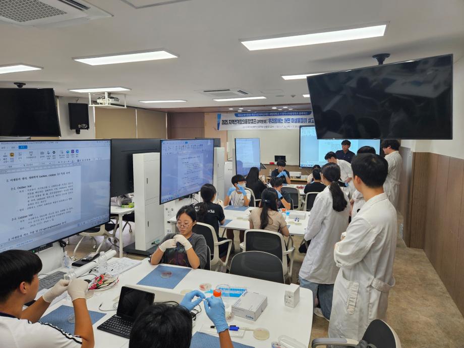 본문 시작 홈으로 학부자료실 학부소개 교육과정 학부공지게시판 학부자료실 홈페이지가이드 학부행사 및 사진게시판 학부행사 및 사진게시판 학생회 소개 학부행사 및 사진게시판 페이스북 트위터 프린트 바이오제약산업학부 지역연계 창의 융합 캠프 바이오제약산업학부 2320 2025-07-24 2025년 7월23일(화) 이공학관 404호에서 1일차 지역연계 창의융합캠프가 열렸습니다. 바이오제약산업학부 신용국교수님께서 제천지역 중학교 3학년 학생들과 함께 이틀간 ‘우리 몸에는 어떤 미생물이 살고 있을까?’라는 주제로 강의와 미생물관찰 실습을 진행합니다. 바이오제약산업학부는 지역 학생들의 과학에 대한 관심을 고양하고 진로를 선택하는데 도움을 주고자 합니다. 목록 이전바이오제약산업학부 여름방학 특별활동 다음 바이오제약산업학부 GC-MS 및 LC-MS 실습을 통한 의약품 및 천연물소재 분석 교육 담당부서 : 바이오제약산업학부 담당자 : - 연락처 : 043-649-1729 최종수정일 : 2024-10-26 만족도조사 만족도 조사 이 페이지에서 제공하는 정보에 대하여 만족하시나요? 매우만족 만족 보통 불만족 매우불만족