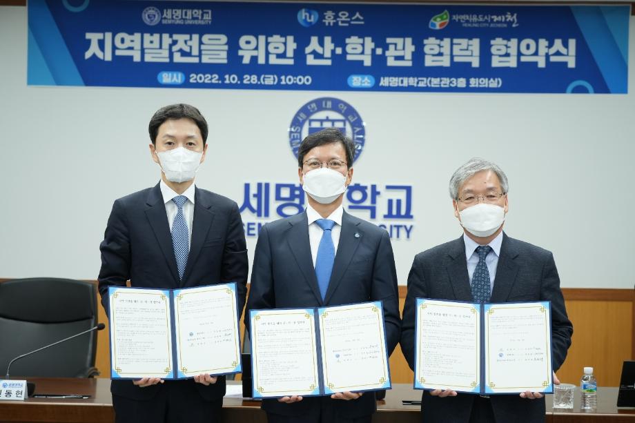 본문 시작 홈으로 학부자료실 학부소개 교육과정 학부공지게시판 학부자료실 홈페이지가이드 학부행사 및 사진게시판 학부행사 및 사진게시판 학생회 소개 학부행사 및 사진게시판 페이스북 트위터 프린트 세명대학교:휴온스 상생협력을 위한 산학관협약 체결 바이오제약산업학부 3497 2022-11-04 세명대학교(총장 권동현)와 휴온스그룹(회상 윤성태), 제천시는 28일 세명대학교 본관 대회의실에서 상생협력을 위한 산학관 협약을 체결했다. 이 자리에 직접 관련 전공인 바이오제약산업학부, 화장품뷰티학부 교수들도 함께하였다. 목록 이전한국식품영양과학회에서 포스터 발표 다음 오송첨단의료산업진흥재단 등 견학 담당부서 : 바이오제약산업학부 담당자 : - 연락처 : 043-649-1729 최종수정일 : 2024-10-26 만족도조사 만족도 조사 이 페이지에서 제공하는 정보에 대하여 만족하시나요? 매우만족 만족 보통 불만족 매우불만족