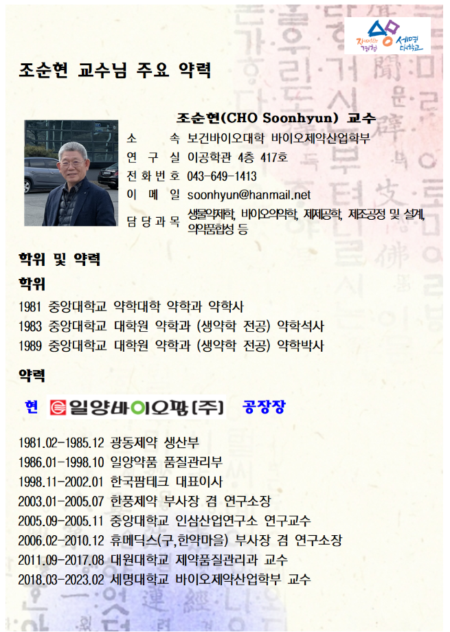 본문 시작 홈으로 학부자료실 학부소개 교육과정 학부공지게시판 학부자료실 홈페이지가이드 학부행사 및 사진게시판 학부행사 및 사진게시판 학생회 소개 학부행사 및 사진게시판 페이스북 트위터 프린트 조순현 교수님 정년기념 특별세미나 안내 바이오제약산업학부 3825 2023-02-16 조순현 교수님 정년기념 특별세미나 안내 목록 이전학위수여식 안내 다음 국가장학금 신청안내 담당부서 : 바이오제약산업학부 담당자 : - 연락처 : 043-649-1729 최종수정일 : 2024-10-26 만족도조사 만족도 조사 이 페이지에서 제공하는 정보에 대하여 만족하시나요? 매우만족 만족 보통 불만족 매우불만족