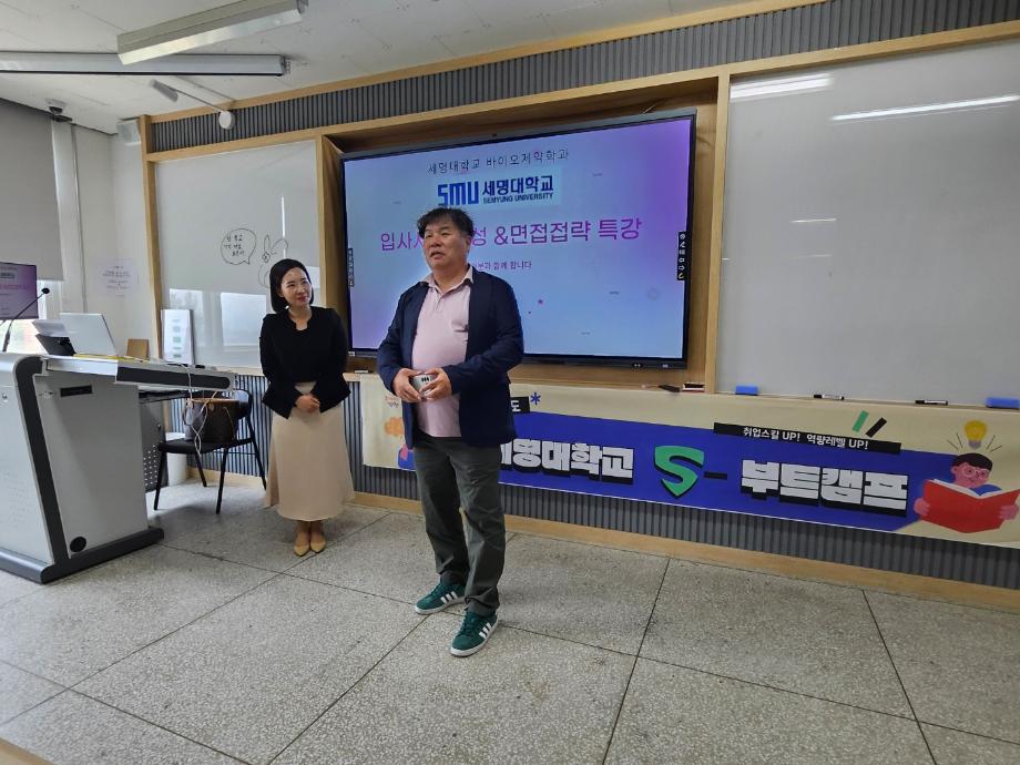 본문 시작 홈으로 학부자료실 학부소개 교육과정 학부공지게시판 학부자료실 홈페이지가이드 학부행사 및 사진게시판 학부행사 및 사진게시판 학생회 소개 학부행사 및 사진게시판 페이스북 트위터 프린트 바이오제약산업학부 2024 S-Boot Camp 시행 바이오제약산업학부 2443 2024-05-29 바이오제약산업학부에서는 5월 24-25일 S-Boot Camp를 시행하였다. 본행사는 취업을 희망하는 학생들에게 이력서, 자기소개서를 작성, 감수하여 인생 자소서를 확보하고 면접 대비 준비사항에 대하여 교육하여 우수 기업에 취업할 수 있도록 지도하는 대학지원 프로그램이다. 목록 이전바이오제약기초실험 (BUFFER 조제 실습) 다음 임병옥 교수님 고별 강연 성료 담당부서 : 바이오제약산업학부 담당자 : - 연락처 : 043-649-1729 최종수정일 : 2024-10-26 만족도조사 만족도 조사 이 페이지에서 제공하는 정보에 대하여 만족하시나요? 매우만족 만족 보통 불만족 매우불만족