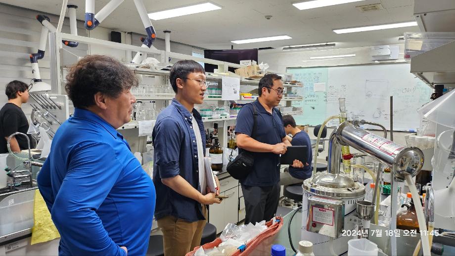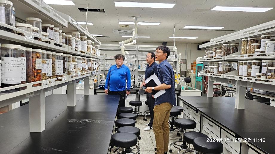 본문 시작 홈으로 학부자료실 학부소개 교육과정 학부공지게시판 학부자료실 홈페이지가이드 학부행사 및 사진게시판 학부행사 및 사진게시판 학생회 소개 학부행사 및 사진게시판 페이스북 트위터 프린트 산림청 국립산림과학원 산림약용자원연구소 연구개발 협의 바이오제약산업학부 2627 2024-07-21 2024년 7월 18일 산림청 국립산림과학원 산림약용자원연구소 김현준 연구사와 손용환박사가 바이오제약산업학부를 방문하여 진행되고 있는 과제의 점검과 향후 과제에 대한 논의를 하였다. 김현준 박사는 세명대학교 전체수석으로 졸업한 바이오제약산업학부 1회 동문으로 현재는 산림청 국립산림과학원 산림약용자원연구소에서 연구사로 근무 중이다. 목록 이전유유제약 표준현장실습 박*은 면담 다음 우리학부 동문 박지원 박사 2년 연속 한국미생물 · 생명공학회 우수 포스터발표상 수상 담당부서 : 바이오제약산업학부 담당자 : - 연락처 : 043-649-1729 최종수정일 : 2024-10-26 만족도조사 만족도 조사 이 페이지에서 제공하는 정보에 대하여 만족하시나요? 매우만족 만족 보통 불만족 매우불만족