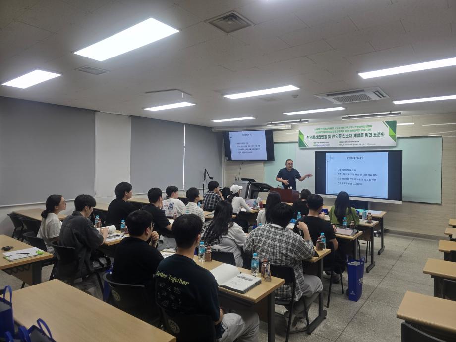 본문 시작 홈으로 학부자료실 학부소개 교육과정 학부공지게시판 학부자료실 홈페이지가이드 학부행사 및 사진게시판 학부행사 및 사진게시판 학생회 소개 학부행사 및 사진게시판 페이스북 트위터 프린트 바이오제약산업학부 현장 실무형 교육 바이오제약산업학부 1591 2025-07-17 2025년 7월8일(화) 이공학관 402호에서 쳔연물조직배양 세포주은행 구축을 위한 현장실무형 교육이 있었습니다. 김현준박사님(국립산림과학원)과 양병욱교수님(오산대)께서 ‘천연물산업현황과 천연물 신소재 개발을 위한 표준화’ 라는 주제로 강의를 해 주셨습니다. 중요한 산림 자원과 천연물 신소재 개발 과정을 이해하는 뜻 깊은 시간이었습니다. 목록 이전바이오제약산업학부 2025년 MT 다음 바이오제약산업학부 2025년 여름방학 특별활동 실습 담당부서 : 바이오제약산업학부 담당자 : - 연락처 : 043-649-1729 최종수정일 : 2024-10-26 만족도조사 만족도 조사 이 페이지에서 제공하는 정보에 대하여 만족하시나요? 매우만족 만족 보통 불만족 매우불만족