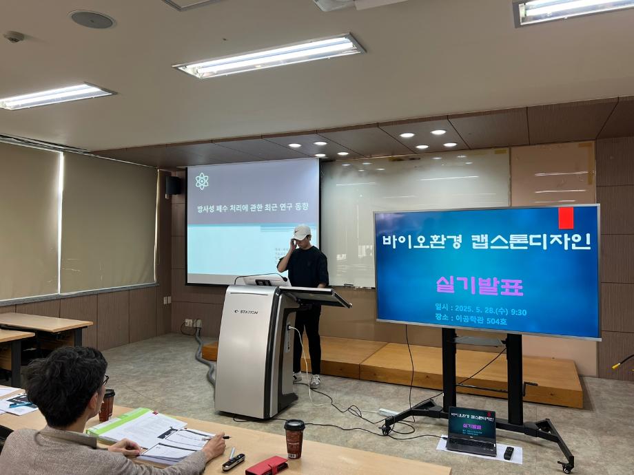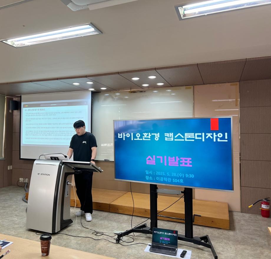 본문 시작 홈으로 커뮤니티 학과소개 교수소개 학과과정 커뮤니티 홈페이지가이드 학과활동 및 행사 학과공지 채용정보 학과활동 및 행사 전공자료실 동아리 학과활동 및 행사 페이스북 트위터 프린트 2025학년도 바이오환경공학과(환경에너지학과) 캡스톤디자인 최종발표회 개최 환경에너지학과 1394 2025-05-28 4학년 졸업논문과 연계한 '바이오환경캡스톤디자인' 최종 발표회가 개최되었습니다. 1. 일시 : 2025.05.28.(수). 9:30 2. 장소 : 이공학관 504호 학과 지도교수님의 지도로 총 2개팀의 발표와 질의응답이 있었습니다. 발표의 주제는 다음과 같습니다. 1) 방사성 폐수 처리에 관한 최근 연구 동향 (지도교수 : 최석순) 2) 국내 환경분야의 딥러닝 기법 적용 사례조사 (지도교수 : 윤석표) 한 학기 동안 졸업논문 발표 준비한 4학년 학생들과 지도교수님 모두 수고 많으셨습니다. 목록 이전환경에너지학과/재난안전학과 단체 봉사 실시 다음 바이오환경실무체험 학술특강 1차 실시 담당부서 : 환경에너지학과 담당자 : - 연락처 : 043-649-1337 최종수정일 : 2024-10-26 만족도조사 만족도 조사 이 페이지에서 제공하는 정보에 대하여 만족하시나요? 매우만족 만족 보통 불만족 매우불만족