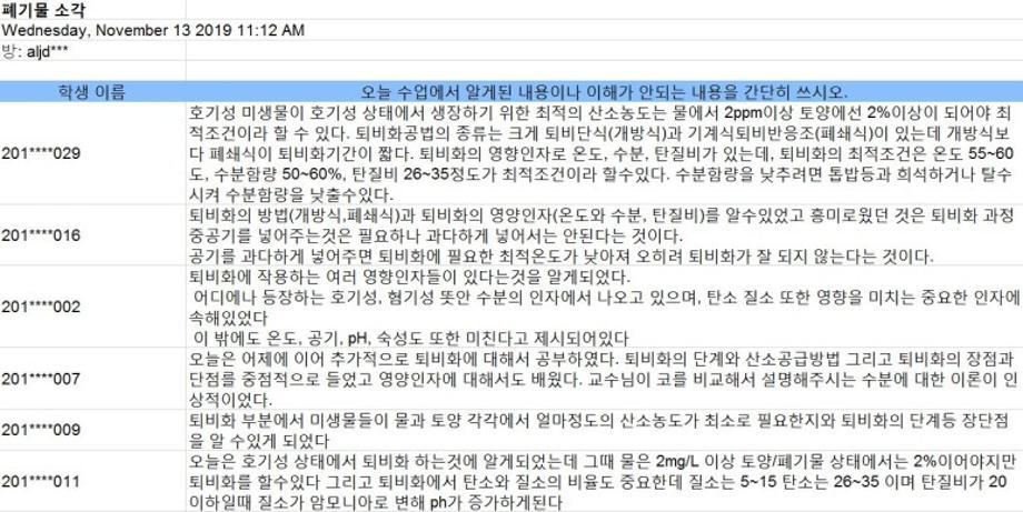 스마트폰을 활용한 이공계 분야의 쌍방향 수업(바이오환경공학과)