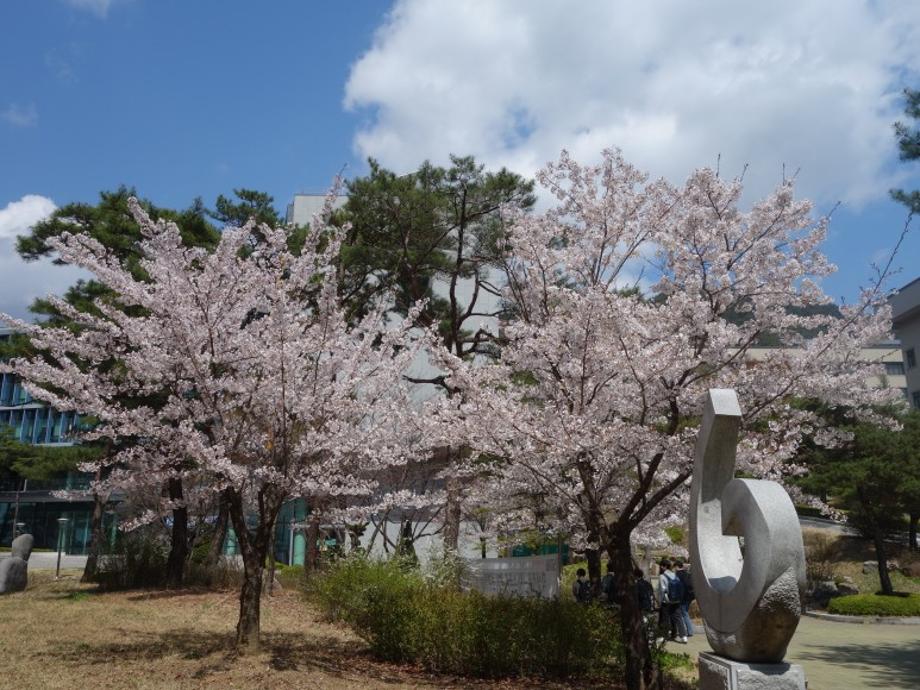 지금 학교에는 이공학관을 비롯하여 민송기념관, 설립자 권영우 박사님의 동상 등 벚꽃으로 꾸며진 세명대학교를 확인할 수 있습니다.