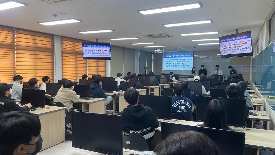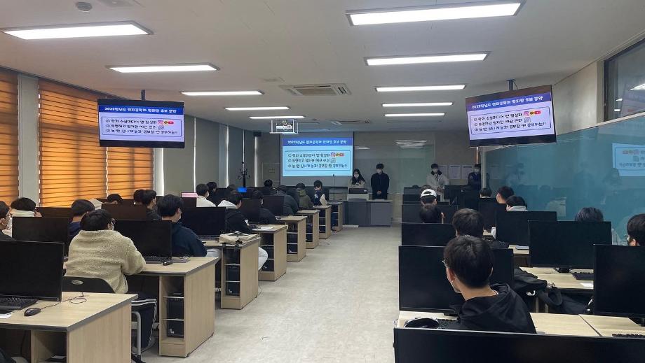 본문 시작 홈으로 커뮤니티 학과소개 교육과정 학과활동 커뮤니티 진로취업 입학상담 홈페이지가이드 포토갤러리 학과공지 포토갤러리 자유게시판 동영상 게시판 포토갤러리 페이스북 트위터 프린트 2023년도 학회장 선거 전자공학과 3440 2022-11-21 세명대학교 전자공학과에서 2023년 학회장 투표를 진행하였습니다. 선거 후보로는 정) 손현아 부) 정민기 학생이 단일후보로 나왔습니다. 공약으로는 1. 학과 소셜미디어 앱 활성화 2. 투명하고 철저한 예산관리 3. 놀 땐 신나게 놀고! 공부할 땐 공부하는!! 이였습니다. 투표 결과 당선이 되었습니다. 축하하고 내년 전자공학과를 잘 부탁드립니다!! 목록 이전2022년도 캡스톤 디자인 졸업작품 발표회 다음 2022년 캡스톤 디자인 졸업작품 발표회 담당부서 : 전자공학과 담당자 : - 연락처 : 043-649-1683 최종수정일 : 2024-10-26 만족도조사 만족도 조사 이 페이지에서 제공하는 정보에 대하여 만족하시나요? 매우만족 만족 보통 불만족 매우불만족