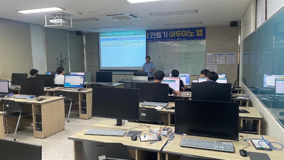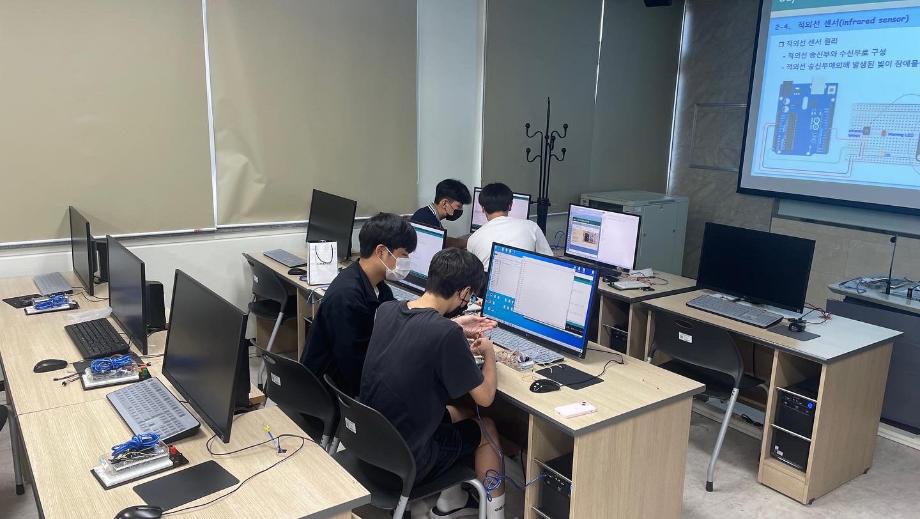본문 시작 홈으로 커뮤니티 학과소개 교육과정 학과활동 커뮤니티 진로취업 입학상담 홈페이지가이드 포토갤러리 학과공지 포토갤러리 자유게시판 동영상 게시판 포토갤러리 페이스북 트위터 프린트 제천 세명고등학교 특강 2일차(나의 앱 만들기 아두이노 앱) 전자공학과 3213 2022-07-15 7/14일 세명고등학교 학생을 상대로 ‘나의 앱 만들기 아두이노 앱’ 특강을 진행하였습니다. 비교적 짧은 시간이였지만 학생들은 IoT에 필요한 여러 센서들을 제어하며 블루투스와 어플을 이용하여 간단한 IoT 실습을 하였습니다. 학생들이 전자공학에 관심을 가지고 흥미를 가질 수 있는 시간이였습니다. 목록 이전제천 세명고등학교 특강 1일차(나의 앱 만들기 아두이노 앱) 다음 2022년도 전자공학과 전공체험 프로그램 담당부서 : 전자공학과 담당자 : - 연락처 : 043-649-1683 최종수정일 : 2024-10-26 만족도조사 만족도 조사 이 페이지에서 제공하는 정보에 대하여 만족하시나요? 매우만족 만족 보통 불만족 매우불만족