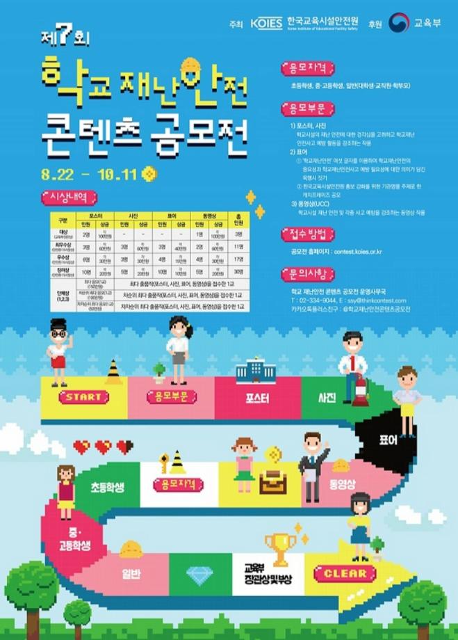 제7회 학교 재난 안전 콘텐츠 공모전: (~10/11) _ http://contest.koies.or.kr/