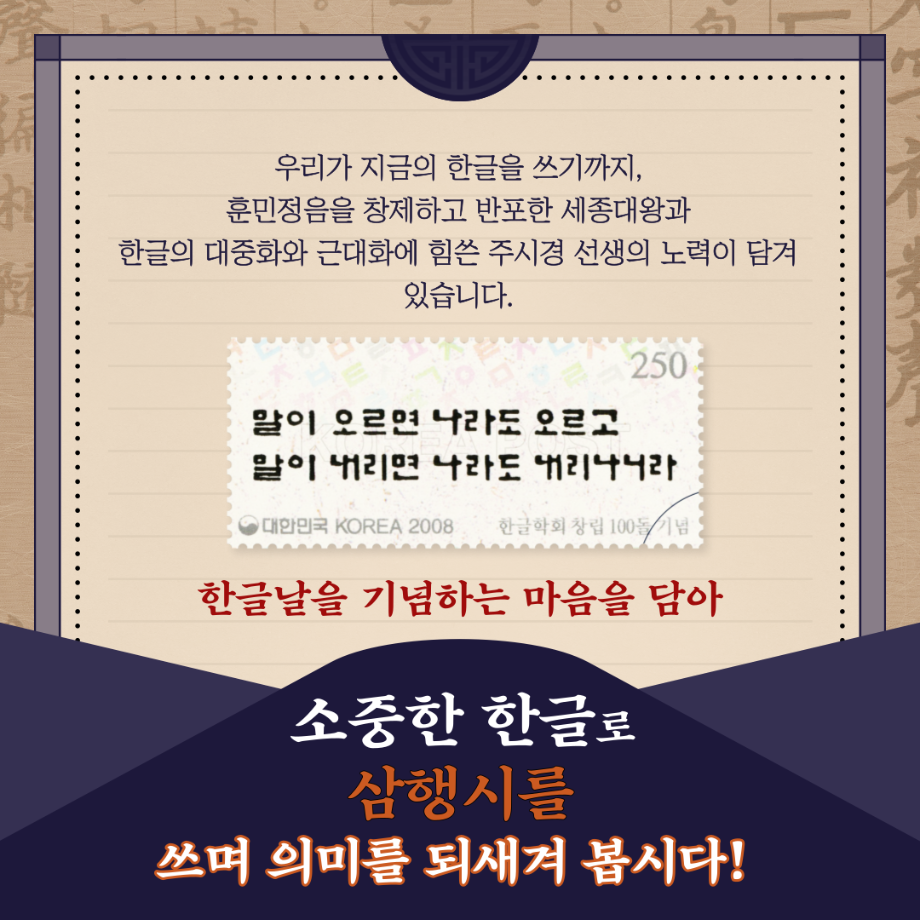 본문 시작 홈으로 학부소식 학부소개 교육과정 학부소식 커뮤니티 홈페이지가이드 학부행사 공지사항 학사일정 학부행사 미문뉴스 미문한컷 포토갤러리 학부행사 페이스북 트위터 프린트 수시 지원자를 위한 한글날 N행시 행사 미디어문화학부 3872 2022-10-13 미디어문화학부에서는 한글날 제 576돌을 맞이하여 학부 자체행사로 한글날 N행시 행사를 진행하고 있습니다! 이번에 미디어문화학부 수시 지원자만을 위해 3행시 행사도 추가로 진행하고 있습니다! 3행시 선정 대상자를 위한 소정의 상품도 준비되어 있습니다:) 목록 이전[10월의 행사] 한글날 N행시 행사 다음 2022학년도 미디어문화학부 MT 담당부서 : 미디어문화학부 담당자 : - 연락처 : 043-649-1760 최종수정일 : 2024-10-26 만족도조사 만족도 조사 이 페이지에서 제공하는 정보에 대하여 만족하시나요? 매우만족 만족 보통 불만족 매우불만족