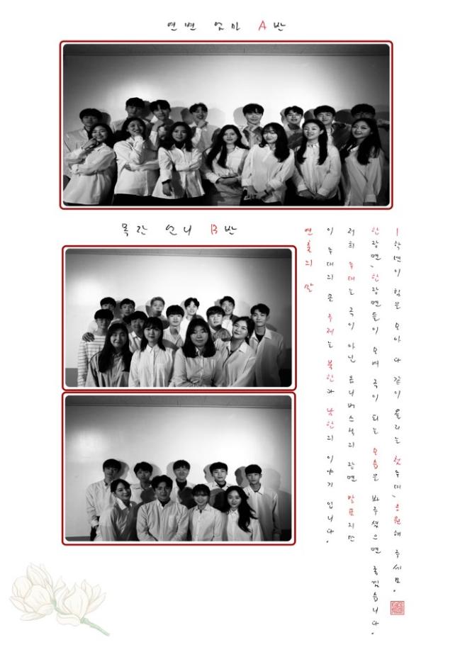 본문 시작 홈으로 커뮤니티 학과소개 교수소개 학과과정 커뮤니티 작품DB 서울대학로 민송아트홀 홈페이지가이드 사진자료실 학과공지 전공자료실 사진자료실 사진자료실 페이스북 트위터 프린트 [공연영상학과] 2019학년도 기초연기 워크샵 "연변엄마 - 목란언니" 공연영상학과 7602 2019-12-14 연출 : 이여빈 , 김민규 , 이재우 , 김재준 배우 : 강채승 , 국효림 , 김민석 , 김영서 , 김주영 , 김지훈 , 김진영 김혜미 , 김영민 , 나보광 , 박건민 , 박성민 , 박솔빈 박주빈 , 방승아 , 서동민 , 심명균 , 안종현 , 양한나 원성준 , 유수진 , 이경용 , 이승욱 , 이승윤 , 이윤규 이종화 , 장현서 , 정지원 , 조문형 , 최동현 , 한가희 한민경 , 황규빈 , 황치웅 도움 : 양승진, 채희수 지도교수 : 최용진 목록 다음 [공연영상학과] 2019-2학기 영상제 다음 [공연영상학과] 2019-2학기 종강총회 담당부서 : 공연영상학과 담당자 : - 연락처 : 043-649-1429 최종수정일 : 2024-10-26 만족도조사 만족도 조사 이 페이지에서 제공하는 정보에 대하여 만족하시나요? 매우만족 만족 보통 불만족 매우불만족