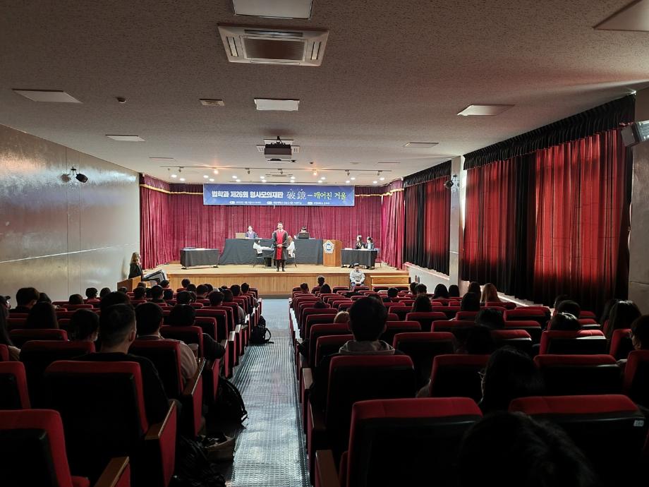 본문 시작 홈으로 커뮤니티 대학소개 학과소개 입학안내 커뮤니티 홈페이지가이드 포토갤러리 대학소식 자료실 포토갤러리 포토갤러리 페이스북 트위터 프린트 [법학과] 제 26회 법학과 형사모의재판 사회과학대학 2059 2022-11-03 2022년 11월 2일 14:00 민송도서관 시청각실 파경 - 깨진거울 (가정폭력) 주제로 진행 목록 이전2021학년도 후기 학위수여식 다음 제6회 사회과학대학 토론대회 담당부서 : 사회과학대학 담당자 : - 연락처 : 043-649-7412 최종수정일 : 2024-10-26 만족도조사 만족도 조사 이 페이지에서 제공하는 정보에 대하여 만족하시나요? 매우만족 만족 보통 불만족 매우불만족