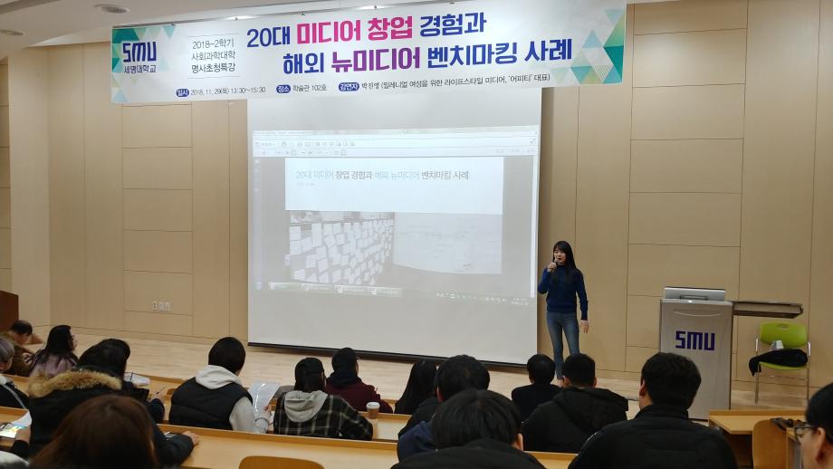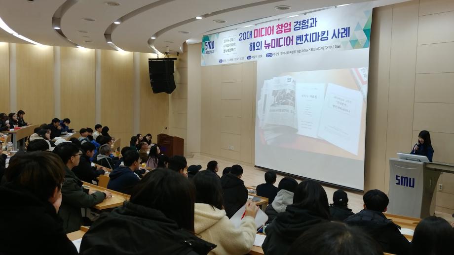 20대만이 할 수 있는 일, 미디어창업 과정의 생생한 이야기로 구성 된 이번 특강에 100여명의 학생들이 참석했습니다.