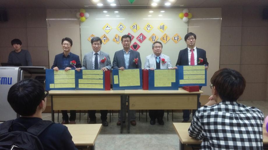 본문 시작 홈으로 학과 소식 학과소개 취업 및 진로 언론 및 보도 학과 소식 대학원 홈페이지가이드 행사사진게시판 행사사진게시판 공지사항 일반자료실 강의자료실 부동산학보 동아리 행사사진게시판 페이스북 트위터 프린트 2016년 스승의날 행사 전체관리자 8432 2016-05-17 2016년 스승의날 행사 일시 : 2016.05.11 장소 : 사회과학관 128호 16 : 00 스승의날을 기념하여 교수님과 재학생들이 한자리에 모였습니다. 모두들 교수님분들께 감사를 표시하며 재학생들은 롤링페이퍼와 작은 선물을 준비하였습니다. 각 학년과대들이 학생들을 대표하여 편지를 낭독하는 시간을가졌으며 마지막으로는 스승의은혜를 다같이 부르며 마무리하였습니다. 교수님 감사합니다~~~!! 목록 다음 2016 청룡체전 이전2016학년도 1학기 책임지도교수제 단체행사 개최 담당부서 : 부동산지적학과 담당자 : - 연락처 : 043-649-1784 최종수정일 : 2024-10-26 만족도조사 만족도 조사 이 페이지에서 제공하는 정보에 대하여 만족하시나요? 매우만족 만족 보통 불만족 매우불만족