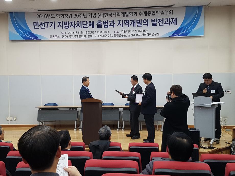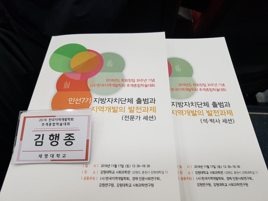 본문 시작 홈으로 학과 소식 학과소개 취업 및 진로 언론 및 보도 학과 소식 대학원 홈페이지가이드 행사사진게시판 행사사진게시판 공지사항 일반자료실 강의자료실 부동산학보 동아리 행사사진게시판 페이스북 트위터 프린트 2018년도 학회창립 30주년 기념 및 한국지역개발학회 추계종합학술대회 좌장참석 부동산학과 11367 2018-11-18 2018년도 학회창립 30주년 기념 및 한국지역개발학회 추계종합학술대회 좌장참석 일시: 2018.11.17(토) 13:00-20:00 장소: 강원대학교 사회과학관 공동주최: (사)한국지역개발학회, 경제.인문사회연구회, 강원연구원, 강원대학교 사회과학원 주요내용: 라운드테이블, 전문가세션, 석박사세션 등 22편 주제발표 참가자: 세명대학교 김행종 교수님 전문가 세션 좌장 참가 목록 이전대한국토도시계획학회 대전.세종.충청지회 2018 추계학술대회 및 충북대 도시공학과 30주년 기념 공동세미나 좌장 참가 다음 2018년 (사)한국부동산법학회 동계 학술대회 참가 담당부서 : 부동산지적학과 담당자 : - 연락처 : 043-649-1784 최종수정일 : 2024-10-26 만족도조사 만족도 조사 이 페이지에서 제공하는 정보에 대하여 만족하시나요? 매우만족 만족 보통 불만족 매우불만족