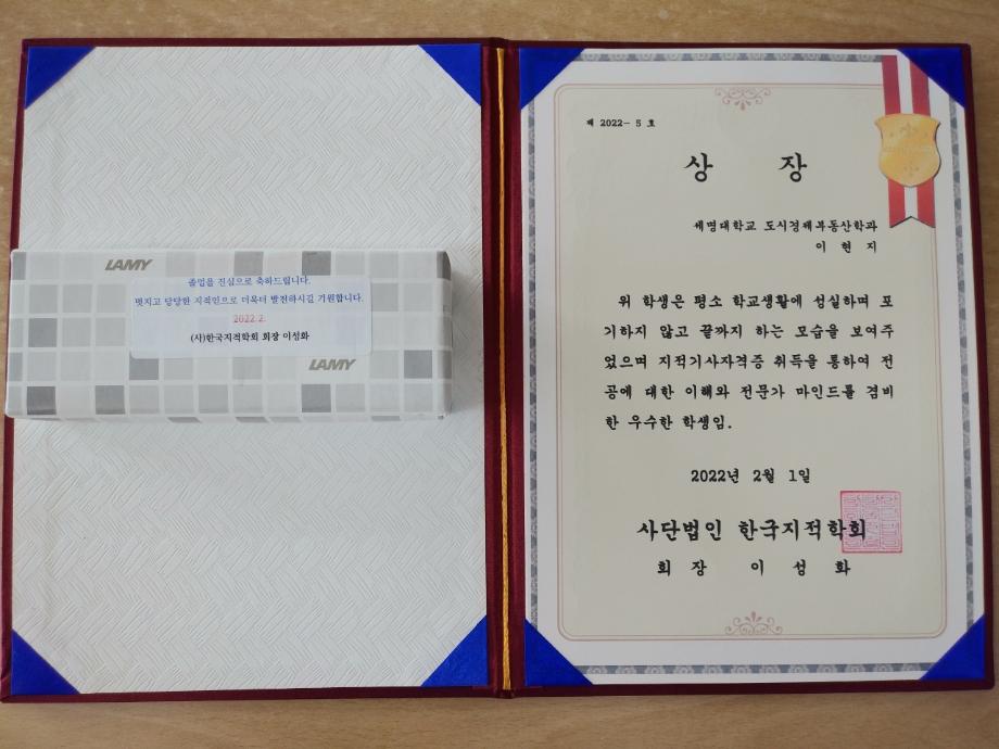 본문 시작 홈으로 학과 소식 학과소개 취업 및 진로 언론 및 보도 학과 소식 대학원 홈페이지가이드 행사사진게시판 행사사진게시판 공지사항 일반자료실 강의자료실 부동산학보 동아리 행사사진게시판 페이스북 트위터 프린트 2021학년도 전기 졸업자 표창 수상 도시경제부동산학과 2301 2022-02-08 2021학년도 전기 졸업자 표창 수상 안내입니다. 한국감정평가사 협회장상 : 박예림 한국지적학회 학회장상 : 이현지 대한국토도시계획 학회장상 : 윤상필 부동산학과 수상자 여러분 모두 진심으로 축하드립니다. 각 수상자는 우편으로 표창장을 발송 할 예정입니다. 작성자 : 디지털홍보특별채용 조교 목록 이전도시경제부동산학과 새로운 로고 다음 2021학년도 전기 졸업자 표창 수상 담당부서 : 부동산지적학과 담당자 : - 연락처 : 043-649-1784 최종수정일 : 2024-10-26 만족도조사 만족도 조사 이 페이지에서 제공하는 정보에 대하여 만족하시나요? 매우만족 만족 보통 불만족 매우불만족