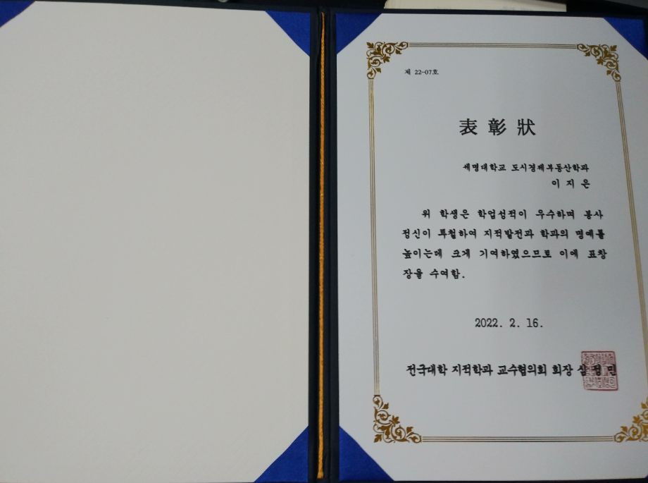 본문 시작 홈으로 학과 소식 학과소개 취업 및 진로 언론 및 보도 학과 소식 대학원 홈페이지가이드 행사사진게시판 행사사진게시판 공지사항 일반자료실 강의자료실 부동산학보 동아리 행사사진게시판 페이스북 트위터 프린트 2021학년도 전기 졸업자 표창 수상 도시경제부동산학과 2456 2022-02-09 2021학년도 전기 졸업자 표창 수상 안내입니다. 한국지적정보학회 학회장상 : 최유정 한국국토정보공사 사장표창 : 이현지 전국대학 지적학과 교수협의회 우수학생표창 : 이지은 부동산학과 수상자 여러분 모두 진심으로 축하드립니다. 각 수상자는 우편으로 표창장을 발송 할 예정입니다. 작성자 : 디지털홍보특별채용 조교 목록 이전2021학년도 전기 졸업자 표창 수상 다음 2021학년도 전기 졸업식 담당부서 : 부동산지적학과 담당자 : - 연락처 : 043-649-1784 최종수정일 : 2024-10-26 만족도조사 만족도 조사 이 페이지에서 제공하는 정보에 대하여 만족하시나요? 매우만족 만족 보통 불만족 매우불만족