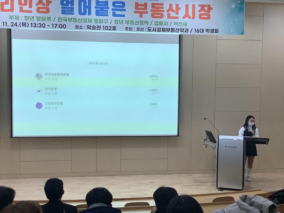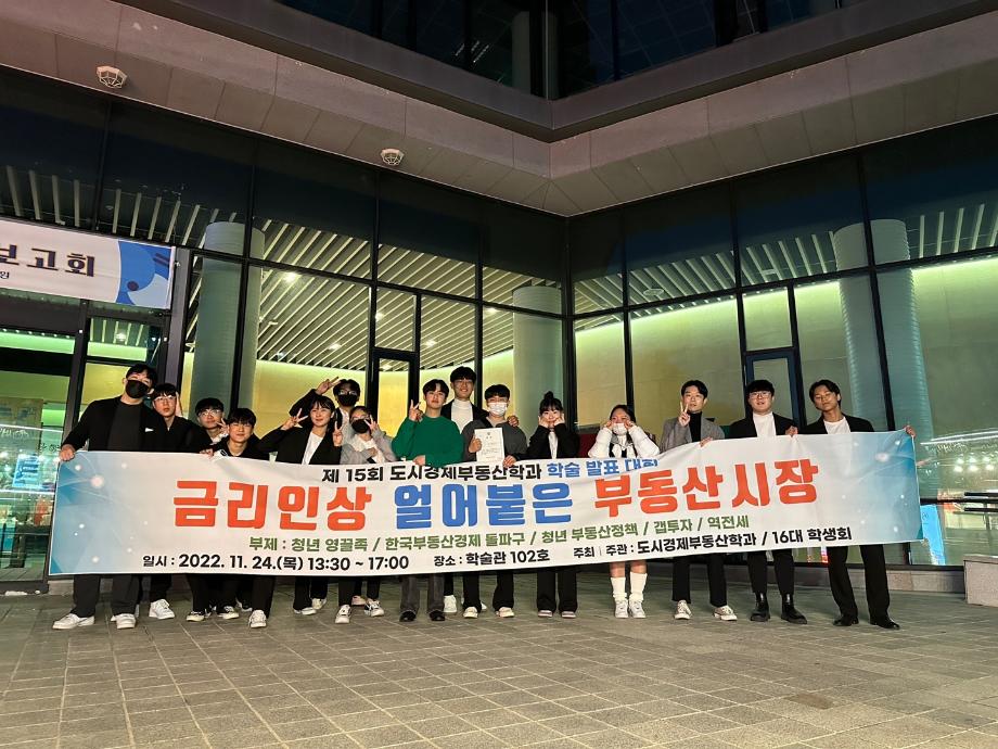 본문 시작 홈으로 학과 소식 학과소개 취업 및 진로 언론 및 보도 학과 소식 대학원 홈페이지가이드 행사사진게시판 행사사진게시판 공지사항 일반자료실 강의자료실 부동산학보 동아리 행사사진게시판 페이스북 트위터 프린트 제15회 도시경제부동산학과 학술제 도시경제부동산학과 3847 2022-12-05 제33회 학술특강, 취업특강, 제15회 도시경제부동산학과 학술제를 진행하였습니다. 공간정보 취업의길에 관하여 특강을 해주신 성동권 대표님과 재학생들의 취업독려를 위하여 특강해주신 정기쁨 선배님 진심으로 감사드립니다. 학술제 학생발표로 많은 지원자들과의 경쟁 속에서 10인의 본선발표와 시상이 있었습니다. 모두 축하합니다. (수상) 대상 : 이 * 영 최우수상 : 유 * 기 우수상 : 장 * 기 장려상 : 남 * 희 모두들 축하합니다. 목록 이전2022 도시경제부동산학과 현장견학 다음 도시경제부동산학과 & 올포랜드 현장실습 MOU체결 담당부서 : 부동산지적학과 담당자 : - 연락처 : 043-649-1784 최종수정일 : 2024-10-26 만족도조사 만족도 조사 이 페이지에서 제공하는 정보에 대하여 만족하시나요? 매우만족 만족 보통 불만족 매우불만족