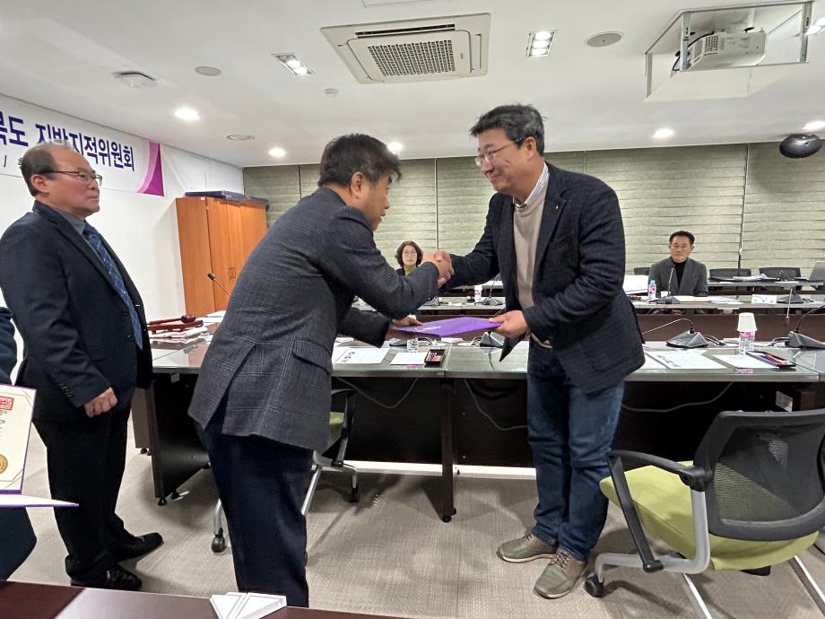 본문 시작 홈으로 학과 소식 학과소개 취업 및 진로 언론 및 보도 학과 소식 대학원 홈페이지가이드 행사사진게시판 행사사진게시판 공지사항 일반자료실 강의자료실 부동산학보 동아리 행사사진게시판 페이스북 트위터 프린트 충청북도 지방지적위원회 권기욱교수님 참여 도시경제부동산학과 3799 2023-12-28 ■ 행사 충청북도 지방지적위원회 개최 ■ 일시 2023.12.27.(수) 10:30 ■ 참여 부동산지적학과 권기욱 교수님 2023년 12월 27일 충북도청에서 지방지적위원으로 부동산지적학과 권기욱 교수님께서 참석하셨습니다. 회의에서는 단양군 영춘면 유암리 618-1번지 일원에 '지적측량부심사 청구건에 대한 사전 안전검토'를 안건으로 심의하였습니다. 작성자 : 부동산지적학과 조교 목록 이전제천제일고등학교 찾아가는 인문학 특강 - 권기욱교수님 다음 법이론실무연구 -(전세보증금 피해구조 검토와 개선방안)부동산지적학과 조재진강사 최우수논문상 취득 담당부서 : 부동산지적학과 담당자 : - 연락처 : 043-649-1784 최종수정일 : 2024-10-26 만족도조사 만족도 조사 이 페이지에서 제공하는 정보에 대하여 만족하시나요? 매우만족 만족 보통 불만족 매우불만족