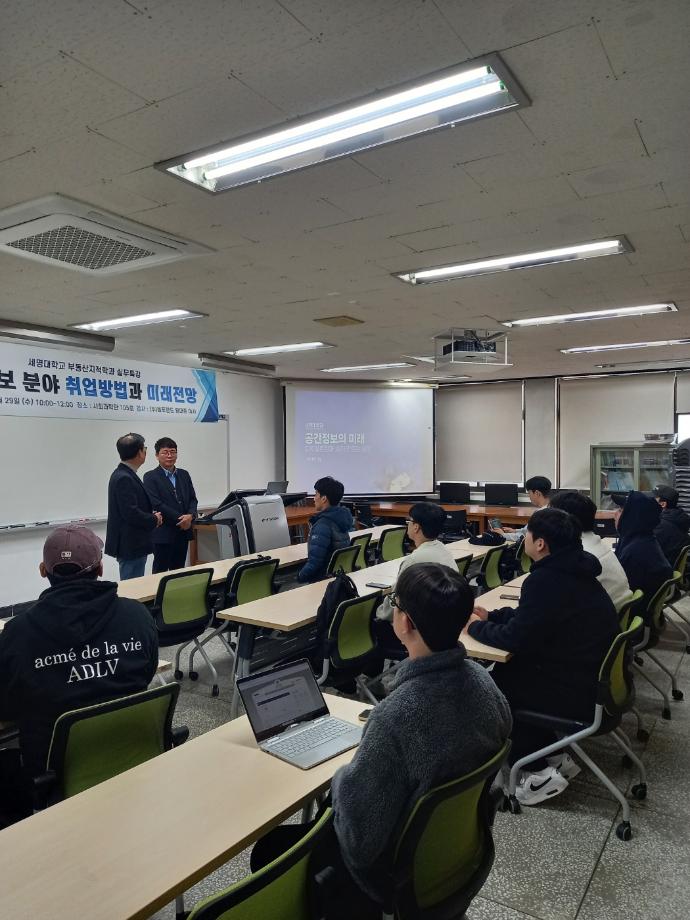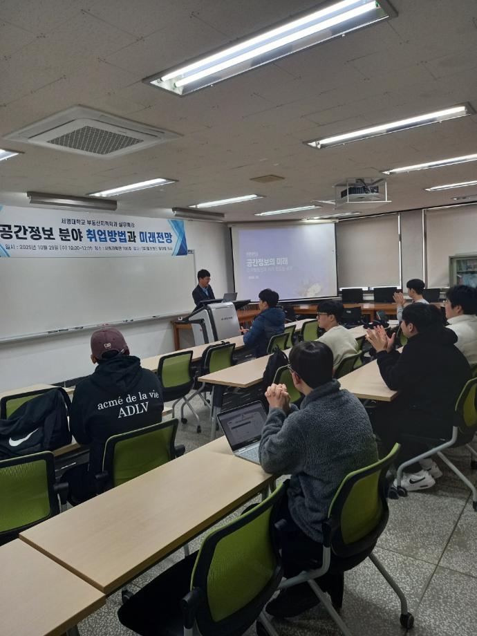 우리 학과에서는 주식회사 올포랜드의 황대중 이사님을 초청하여 ‘공간정보분야 취업방법과 미래전망’을 주제로 특강을 진행하였습니다.