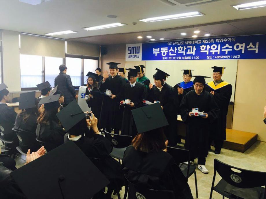 본문 시작 홈으로 학과 소식 학과소개 취업 및 진로 언론 및 보도 학과 소식 대학원 홈페이지가이드 행사사진게시판 행사사진게시판 공지사항 일반자료실 강의자료실 부동산학보 동아리 행사사진게시판 페이스북 트위터 프린트 2017년 학위수여식 전체관리자 8437 2017-04-14 2017 부동산학과 학위수여식 일시: 2017.02.16 목요일 10 :00 시 장소 : 사회과학관 128호 세명대 부동산학과 제7회 학위수여식을 마쳤습니다. 총 25명의 학생이 졸업을 하였으며, 부동산관련 직종 및 공간정보산업분야, 대학원 진학 등 을 하였습니다. 졸업생 여러분 모두 축하드립니다!! 목록 이전2017꿈설계학기 1일차 이전2017학년도 1학기 책임지도교수제 행사 개최 담당부서 : 부동산지적학과 담당자 : - 연락처 : 043-649-1784 최종수정일 : 2024-10-26 만족도조사 만족도 조사 이 페이지에서 제공하는 정보에 대하여 만족하시나요? 매우만족 만족 보통 불만족 매우불만족