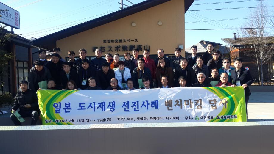 본문 시작 홈으로 학과 소식 학과소개 취업 및 진로 언론 및 보도 학과 소식 대학원 홈페이지가이드 행사사진게시판 행사사진게시판 공지사항 일반자료실 강의자료실 부동산학보 동아리 행사사진게시판 페이스북 트위터 프린트 일본 도시재생 선진사례 벤치마킹 프로그램 참가 전체관리자 8688 2016-02-21 일본 도시재생 선진사례 벤치마킹 프로그램 참가 0 일시: 2016년 2월 15일-19일 0 주관: 대한국토.도시계획학회 0 주요방문기관: 국토교통성, 민간도시개발추진구고(MINTO), 토야마 시청, 마찌즈쿠리토야마, 카나자와시민예술촌, 타가야마 시청, 나가하마 마찌즈쿠리 등 0 참가자: 세명대 김행종 교수, 한양대 구자훈 교수, 목원대 최봉문 교수 등 연구원, 시도 도시재생 공무원 등 목록 다음 2016꿈설계학기 1일차(2) 이전2016 부동산학과 학위수여식 담당부서 : 부동산지적학과 담당자 : - 연락처 : 043-649-1784 최종수정일 : 2024-10-26 만족도조사 만족도 조사 이 페이지에서 제공하는 정보에 대하여 만족하시나요? 매우만족 만족 보통 불만족 매우불만족