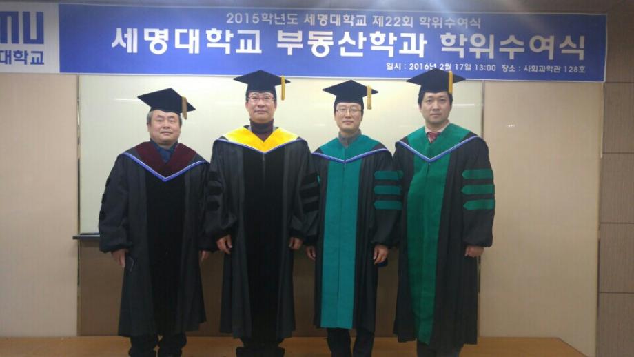 본문 시작 홈으로 학과 소식 학과소개 취업 및 진로 언론 및 보도 학과 소식 대학원 홈페이지가이드 행사사진게시판 행사사진게시판 공지사항 일반자료실 강의자료실 부동산학보 동아리 행사사진게시판 페이스북 트위터 프린트 2016 부동산학과 학위수여식 전체관리자 8798 2016-02-18 2016 부동산학과 학위수여식 일시 : 2016.02.17 수 장소 : 사회과학관 128호 13 : 00 세명대 부동산학과 제7회 학위수여식을 마쳤습니다. 총32명의 학생이 졸업을 하였으며, 부동산관련 직종 및 공간정보산업분야, 대학원 진학 등 72%의 취업을 하였습니다. 졸업생 여러분 모두 축하드립니다. 앞으로의 건승을 기원하겠습니다. 목록 다음 일본 도시재생 선진사례 벤치마킹 프로그램 참가 이전축!!! 김행종 교수님 국기원장 표창장 수상 담당부서 : 부동산지적학과 담당자 : - 연락처 : 043-649-1784 최종수정일 : 2024-10-26 만족도조사 만족도 조사 이 페이지에서 제공하는 정보에 대하여 만족하시나요? 매우만족 만족 보통 불만족 매우불만족