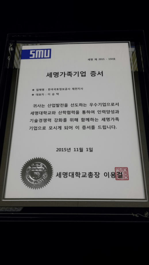 본문 시작 홈으로 학과 소식 학과소개 취업 및 진로 언론 및 보도 학과 소식 대학원 홈페이지가이드 행사사진게시판 행사사진게시판 공지사항 일반자료실 강의자료실 부동산학보 동아리 행사사진게시판 페이스북 트위터 프린트 한국국토정보공사 제천지사 세명가족기업 방문홍보 전체관리자 9472 2015-11-17 한국국토정보공사 제천지사 세명가족기업 방문홍보 일시: 2015년 11월 17일 14:00 장소: 한국국토정보공사 제천지사장실 참석자: 이승택 지사장, 김행종 교수 등 주요내용: 현장실습, 인턴사원 등 협력지원 참고사항: 한국국토정보공사(구 대한지적공사)와 본교는 2008년 10월 14일 산학협동 협정을 체결함 목록 다음 제21회 부동산 전문가 초청 특강개최 이전금상수교수님 취업특강 사진입니다! 담당부서 : 부동산지적학과 담당자 : - 연락처 : 043-649-1784 최종수정일 : 2024-10-26 만족도조사 만족도 조사 이 페이지에서 제공하는 정보에 대하여 만족하시나요? 매우만족 만족 보통 불만족 매우불만족