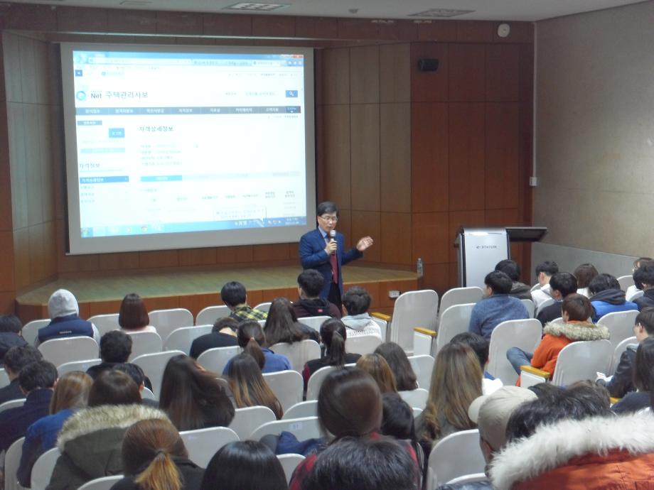 본문 시작 홈으로 학과 소식 학과소개 취업 및 진로 언론 및 보도 학과 소식 대학원 홈페이지가이드 행사사진게시판 행사사진게시판 공지사항 일반자료실 강의자료실 부동산학보 동아리 행사사진게시판 페이스북 트위터 프린트 김행종 교수 특별 취업특강 실시 전체관리자 9884 2015-11-04 강주제: 평생자격증의 취득 및 취업분야: 부동산자격증을 중심으로 일시: 2015. 11.4(수) 18:30-20:20 장소: 세명대학교 공학관 123호 대상: 전교생 선착순 150명 내용: 평생자격증 이해하기, 부동산관련 자격증 소개, 취득하기, 취업분야 등 강사: 세명대 부동산학과 김행종 교수 목록 다음 지난 여름 로키산맥 트레킹..... 다음 2015학년도 2학기 책임지도교수제 단체행사 개최 담당부서 : 부동산지적학과 담당자 : - 연락처 : 043-649-1784 최종수정일 : 2024-10-26 만족도조사 만족도 조사 이 페이지에서 제공하는 정보에 대하여 만족하시나요? 매우만족 만족 보통 불만족 매우불만족