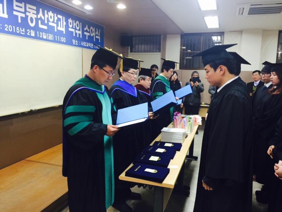 본문 시작 홈으로 학과 소식 학과소개 취업 및 진로 언론 및 보도 학과 소식 대학원 홈페이지가이드 행사사진게시판 행사사진게시판 공지사항 일반자료실 강의자료실 부동산학보 동아리 행사사진게시판 페이스북 트위터 프린트 2015년 상반기 학위수여식 전체관리자 8094 2015-02-26 2015년 상반기 학위수여식 지난 2월 13일(금) 오전 11시 학위수여식이 진행되었습니다.. 이날 학위수여식에서는 27명의 부동산학사가 배출이 되었습니다.. 사회에 첫 발을 내딧는 졸업생 여러분들의 앞날에 크나큰 영광이 있기를 기원합니다.. 부동산학과 화이팅!!! 목록 다음 2015학년도 1학기 책임지도교수제 단제행사 개최 이전2015년 도시정책학회 동계해외답사 참가 담당부서 : 부동산지적학과 담당자 : - 연락처 : 043-649-1784 최종수정일 : 2024-10-26 만족도조사 만족도 조사 이 페이지에서 제공하는 정보에 대하여 만족하시나요? 매우만족 만족 보통 불만족 매우불만족