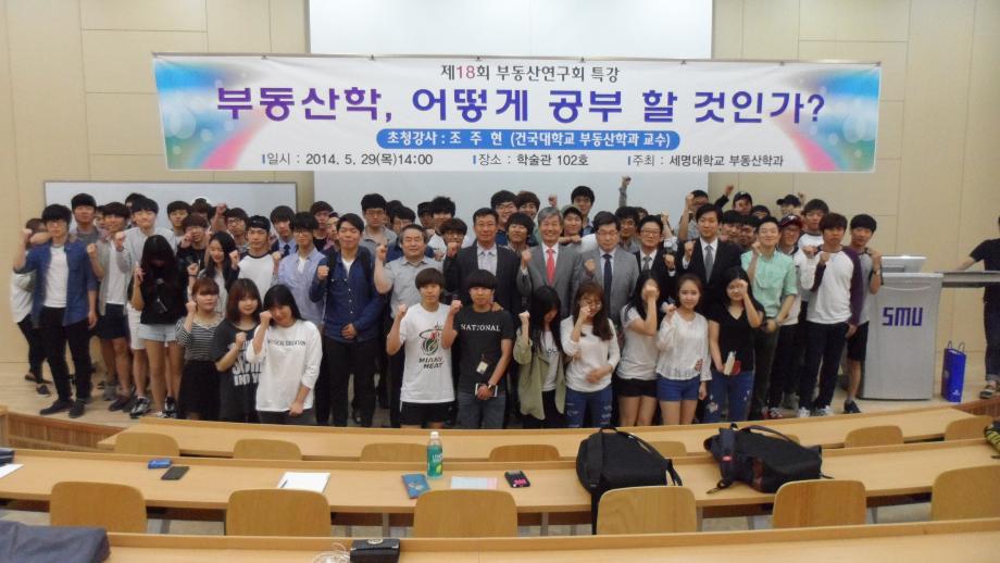 세명대학교 부동산학과(학과장 권기욱 교수)는 2014년 5월29일(목) 세명대학교 학술관 102호에서 건국대학교 부동산학과 조주현 교수를 초빙하여 “부동산학, 어떻게 공부 할 것인가”란 주제로 특강을 실시하였다. 조주현교수는 서울대학교와 미국 MIT에서 부동산 및 도시계획에 대하여 공부를 하셨고 우리나라 부동산학의 대표적인 학자이다. 이날 특강을 통해 지난 우리나라 부동산 시장의 변화에 따른 부동산 학문 역시 시대에 따라 변해 왔고 앞으로도 그러해야 한다는 말씀과 더불어 대학생활에서 학생들이 가져야할 감성과 인성의 중요성에 대하여 강조하셨다. 뿐만 아니라 젊은 학생들에게 할 수 있다는 자신감을 학생들에게 불어넣어 주셨다. 특강 후 많은 학생들의 질문이 잇따르면서 어느 때 보다도 열정적인 토론의 시간을 가졌다. 앞으로 부동산학과에서는 이러한 특강을 지속적으로 개최하여 부동산학과 학생들의 학업능력을 배양시키고자 한다.