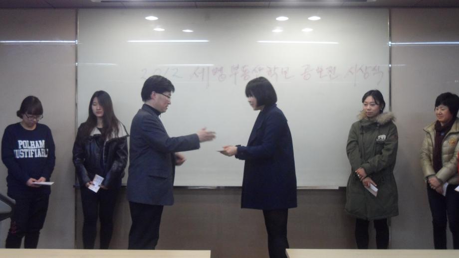 - 우수상( 도서상품권 2만원 ): 4학년 노아름 ( 지적공사연수를 다녀와서 ), 3학년 김진선 ( 2012 디지털 국토 엑스포 ), 3학년 김현준 ( 엄마를 부탁해 ), 2학년 김소연 ( MT를 다녀와서 )